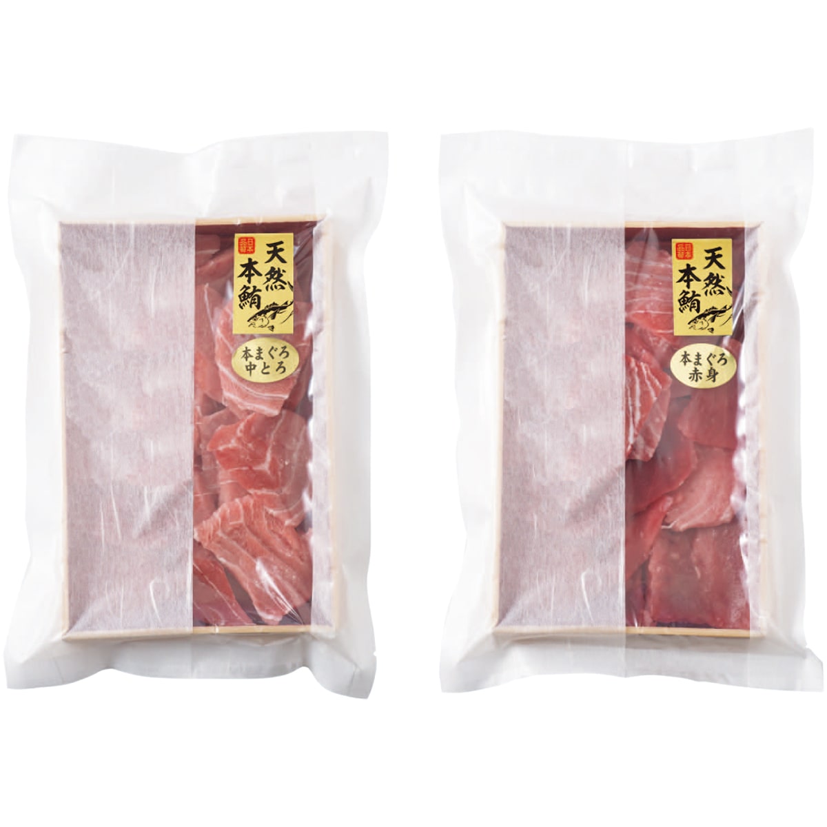 ■商品特徴:「黒いダイヤ」と呼ばれる高級魚の天然本まぐろ(クロマグロ)を贅沢にセットしました。脂がのった中トロ切落しと締まった身質の赤身切落しです。お刺身・丼・手巻き寿司などでお楽しみいただけます。