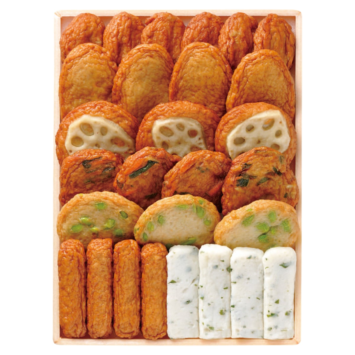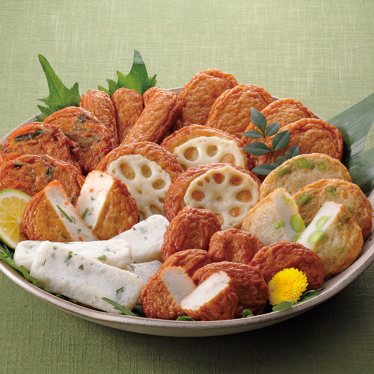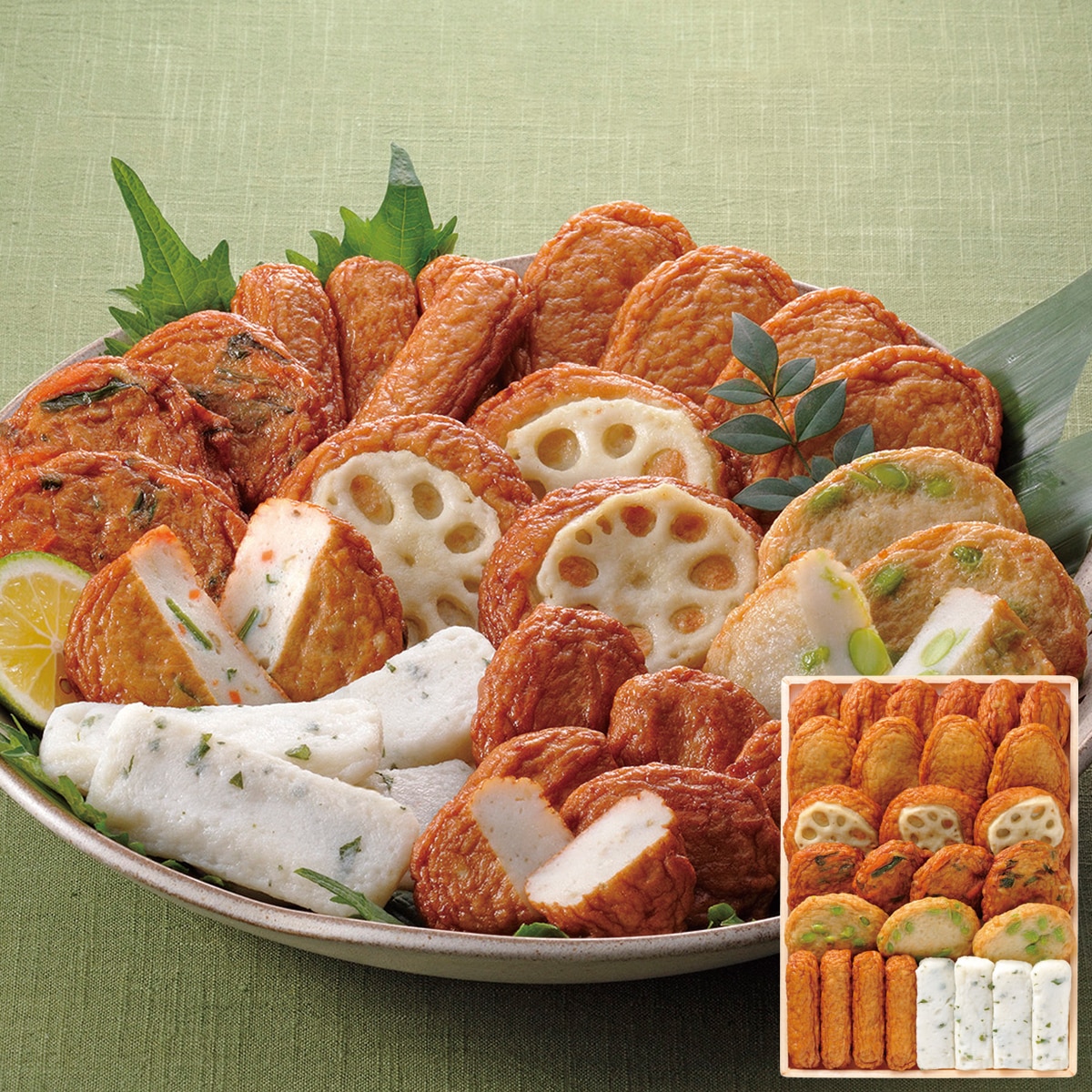 魚肉すり身を鹿児島県産の地酒・焼酎等で味付けし、菜種油でこんがり風味よく揚げた7種28個の詰合せです。