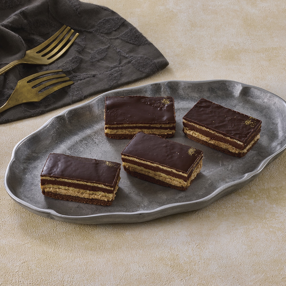 フランス パリ発祥の「オペラ」を焼き菓子に仕上げましたチョコレートグラサージュ、コーヒー生地、チョコレートクリーム、コーヒークリーム、チョコレート生地により6層に仕上げた新レシピのオペラを、9個詰め合わせました。日本の贈り物文化にマッチした、常温保存可能な個包装仕様。チョコレートクリームと生地には、フランスのチョコレートメーカー「オペラ社」のクーベルチュールチョコレートを使用。重なり合う、コーヒーとチョコレートの深い味わいをお愉しみいただけます。