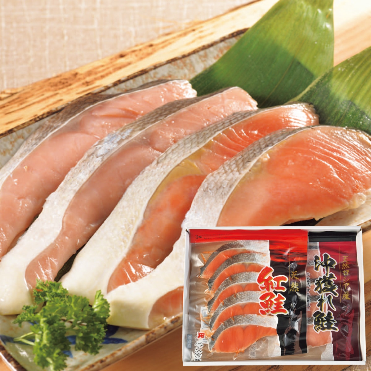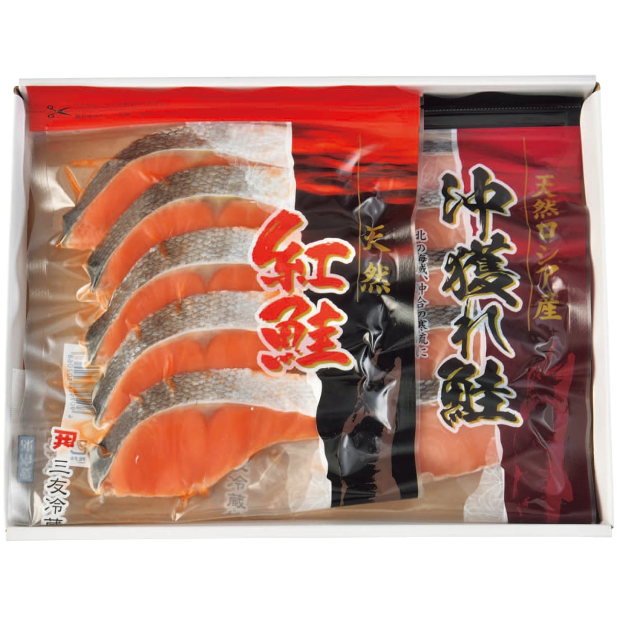 ■商品特徴:北洋でとれた紅鮭と沖獲れ鮭の切身セット