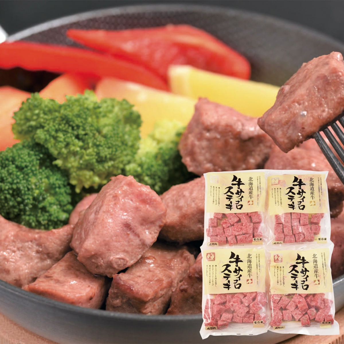 北海道産牛肉・牛脂を使用し、薄くスライスした肉を成型し、食べやすいようにサイコロ型にカットして柔らかく仕上げました。■商品特徴:北海道産牛肉・牛脂を使用し、薄くスライスした肉を成型し、食べやすいようにサイコロ型にカットして柔らかく仕上げました。