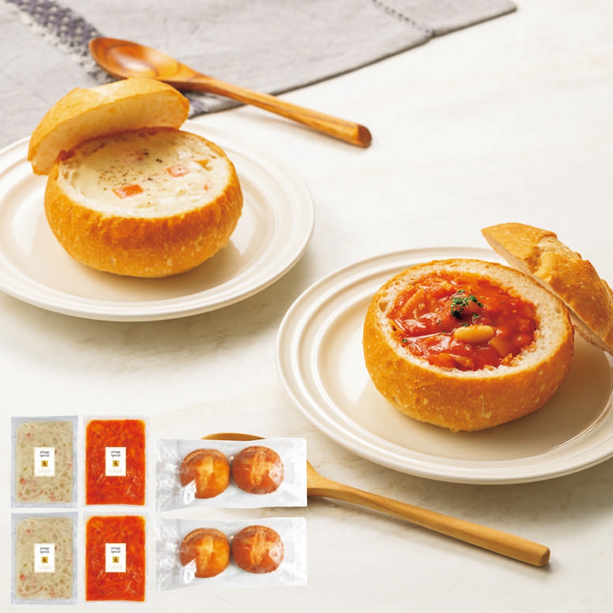 ■内容量:クリームスープ・ミネストローネ各150g×各2、ブレッドボウル×4