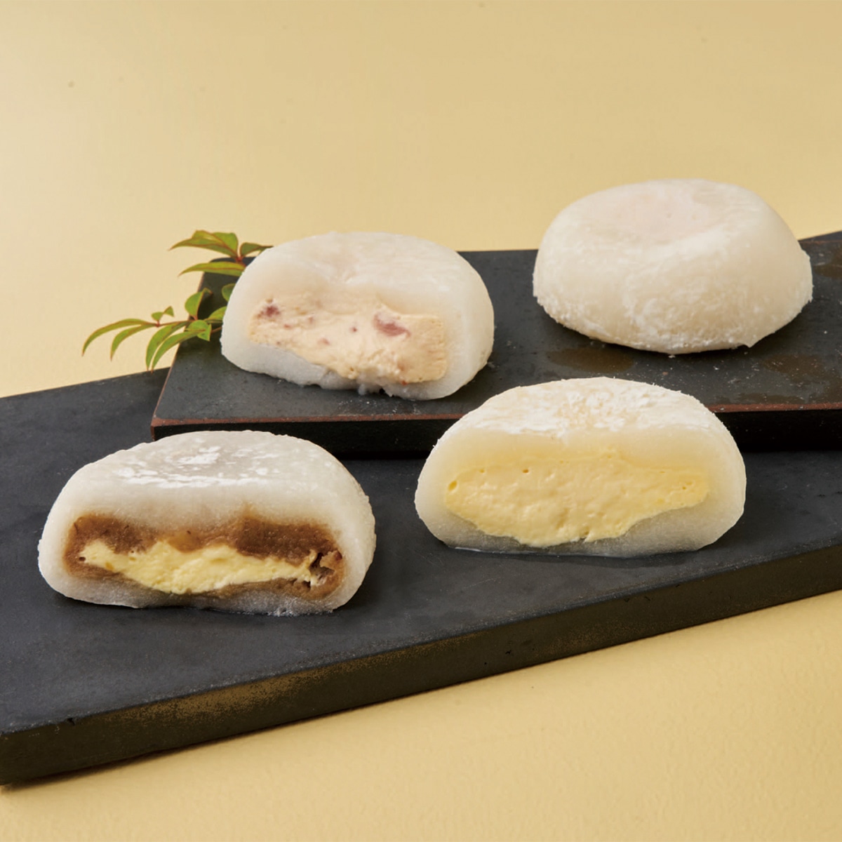 くちどけにこだわった「とろけるくりーむ大福」。冷たいままでもくちどけの良いスプーンで食べる大福です。とろけるくりーむ大福カスタード:手で持って食べることができないほど柔らかいとろける生地で、カスタードクリームを包み込みました。とろけるくりーむ大福あまおう苺:あまおう苺のクリームをとろけるくちどけの生地でたっぷりと包み込みました。とろけるくりーむ大福栗あんカスタード:優しい甘さのとろける生地で栗あんと、なめらかなカスタードクリームを包みました。栗の風味、渋みを感じる粒入りの栗あんを使用することで上品な味わいに仕上げました。