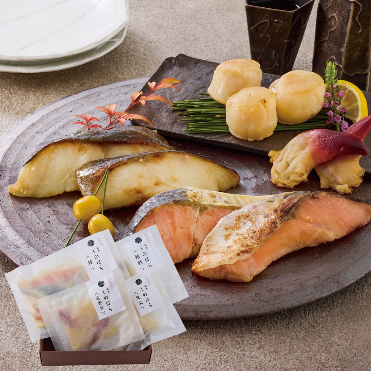 日本の原風景を皿に盛る「銀座しのはら」常に日本料理界を牽引する篠原シェフが厳選した素材で監修した西京焼きのミールキットです。シェフ自身が、日本の食卓にずっと、何年後も何十年後も何百年後も残っていてほしい料理だと語る西京焼きは、「銀座しのはら」でもコースの頂点として登場する八寸の中に入れられることもある人気のメニュー。お酒にも、ご飯にも合う西京焼きは、酒のアテとして最適な北寄貝、帆立貝。定番、王道の銀鱈。白いご飯にぴったりな脂の乗った鮭の4 種類。シェフ監修の西京焼きを、ご家族皆様でお楽しみください。■商品特徴:日本の原風景を皿に盛る「銀座しのはら」常に日本料理界を牽引する篠原シェフが厳選した素材で監修した西京焼きのミールキットです。シェフ自身が、日本の食卓にずっと、何年後も何十年後も何百年後も残っていてほしい料理だと語る西京焼きは、「銀座しのはら」でもコースの頂点として登場する八寸の中に入れられることもある人気のメニュー。お酒にも、ご飯にも合う西京焼きは、酒のアテとして最適な北寄貝、帆立貝。定番、王道の銀鱈。白いご飯にぴったりな脂の乗った鮭の4 種類。シェフ監修の西京焼きを、ご家族皆様でお楽しみください。