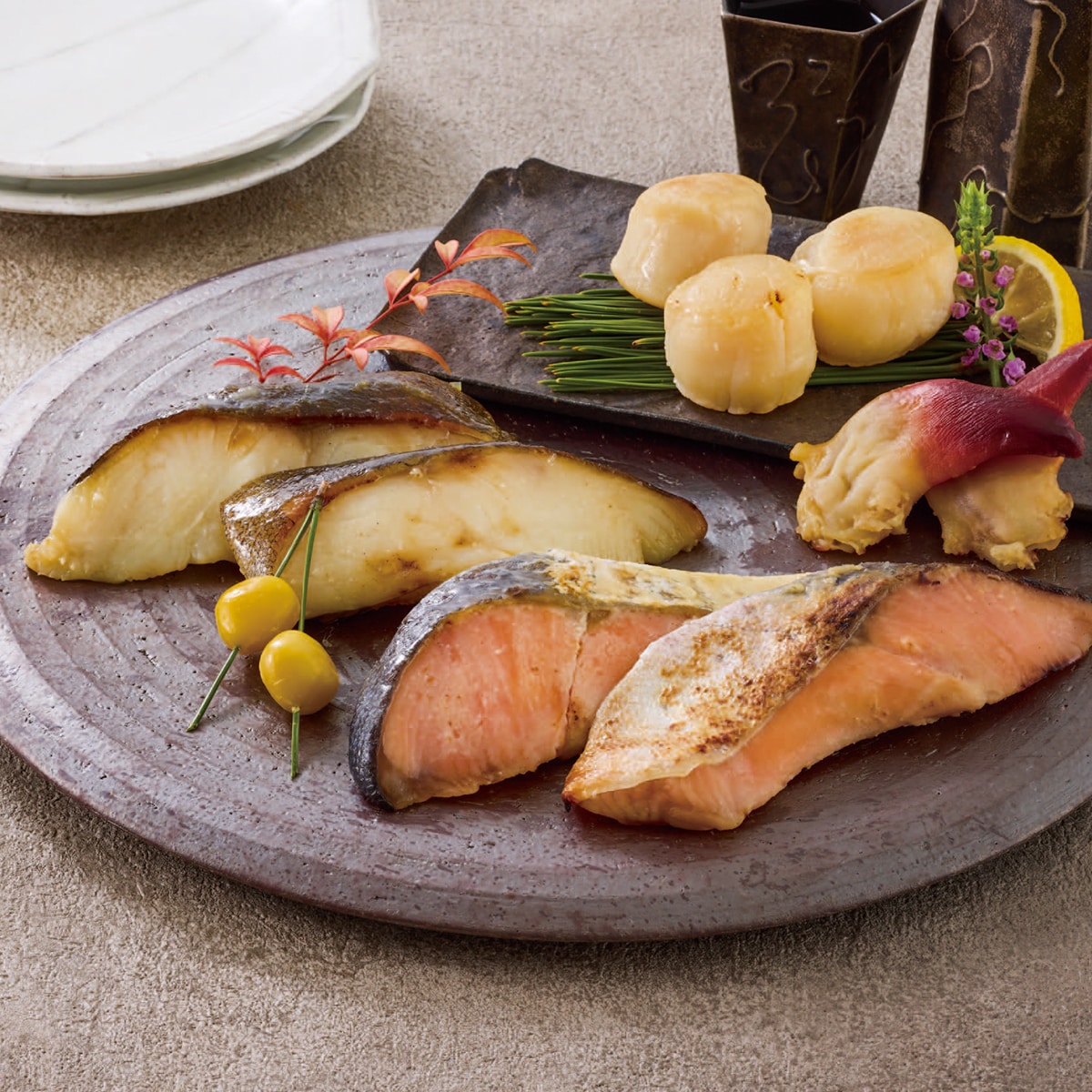 ■内容量:鮭・銀鱈 各2切入、北寄貝(2個入)、帆立(4個入)