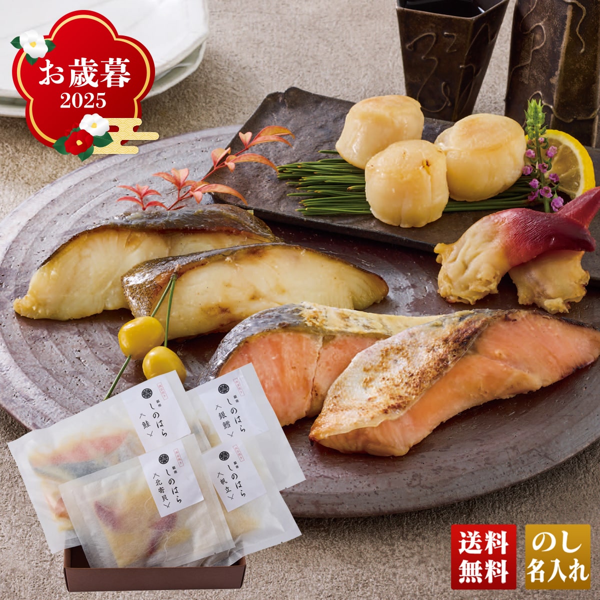 お歳暮 御歳暮 早割 冬ギフト 帰歳暮 ギフト プレゼント 送料無料 ギフト 2025 「銀座しのはら」監修 西京漬けセット 「SS4R-GPM」 グルメ 海鮮 銀座しのはら監修 西京漬け 鮭 銀鱈 北寄貝 帆立 SS4R-GPM【GF】