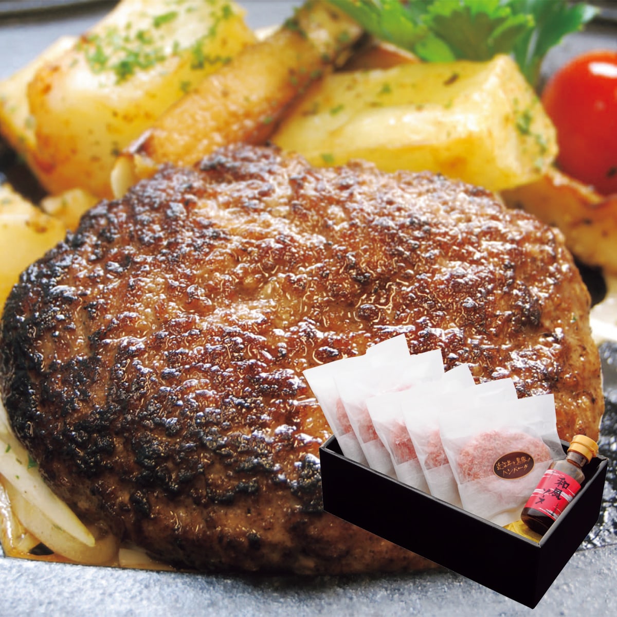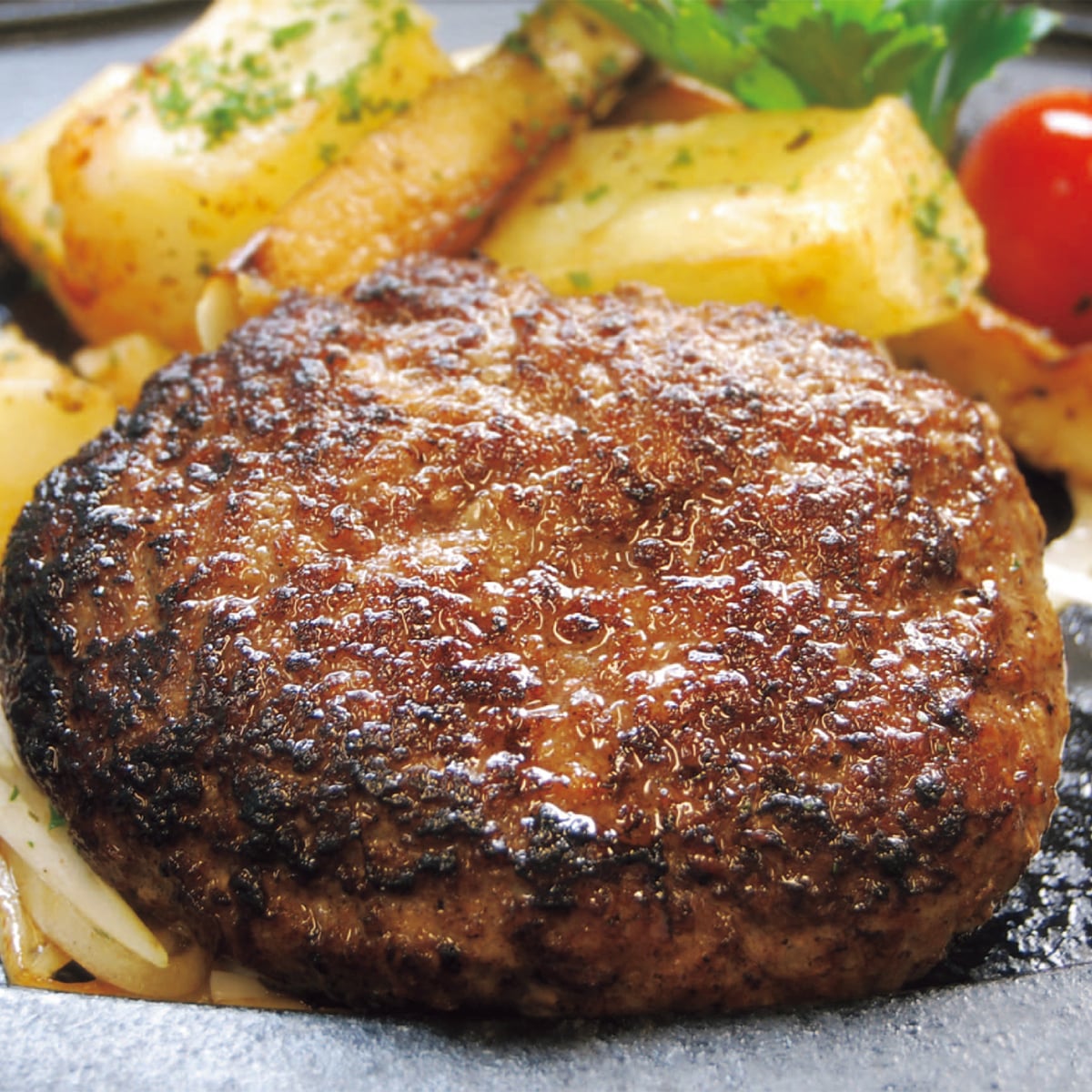 湖国の名産、日本三大和牛のひとつ近江牛肉と、鹿児島県産の黒豚肉を使用し、旨味たっぷりで肉汁溢れるジューシーなハンバーグを作りました。