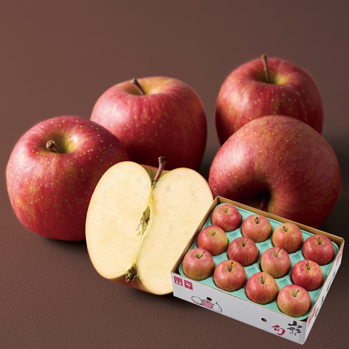 太陽の光をいっぱいに浴びて育った蜜入りサンふじは、シャキッとした歯ごたえに甘味と酸味のバランスが取れたりんごです