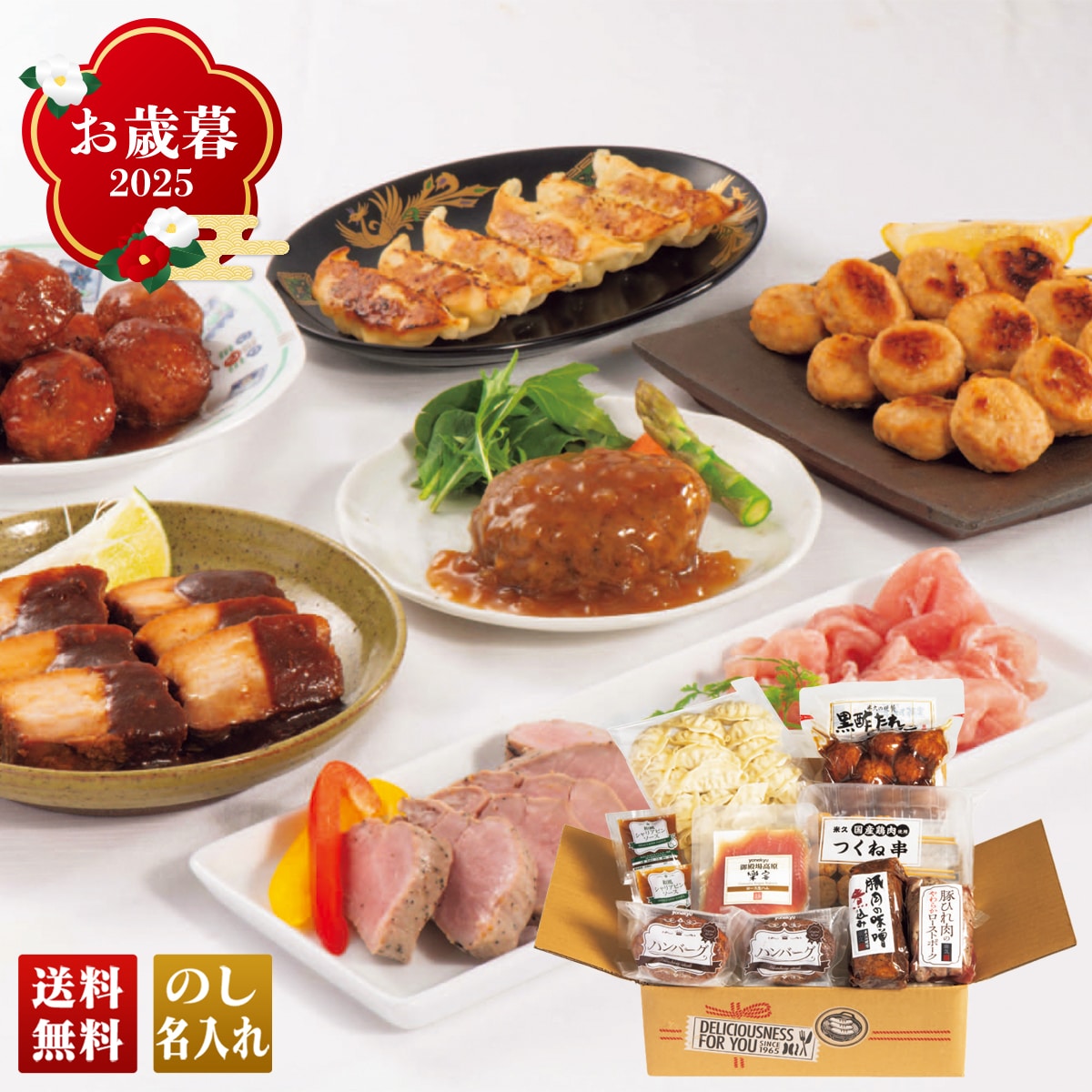 お歳暮 御歳暮 早割 冬ギフト 帰歳暮 ギフト プレゼント 送料無料 ギフト 2025 米久 冬のお楽しみセット 「RGF-50」 肉 肉加工品 グルメ 米久 餃子 ローストポーク 肉だんご つくね串 豚肉の味噌煮込み ロース生ハム ハンバーグ RGF-50【GF】