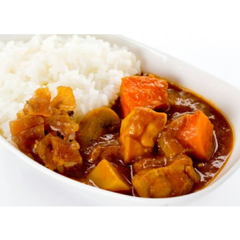 野菜(じゃがいも、たまねぎ、にんじん)、鶏肉(タイ産)、ソテーオニオン、マッシュルーム水煮、りんごパルプ、トマトペースト、植物油脂、カレー粉、チキンエキス、ココナッツミルクパウダー、チャツネ、ブイヨンパウダー、食塩、濃縮パインアップル果汁、しょうゆ、しょうがペースト、にんにくペースト、チキンコンソメパウダー、砂糖、香辛料 / 増粘剤(加工でん粉、グァーガム)、加工でん粉、着色料(カラメル、ウコン)、調味料(アミノ酸等)、酸味料、香料、(一部に小麦・乳成分・牛肉・大豆・鶏肉・豚肉・りんごを含む)