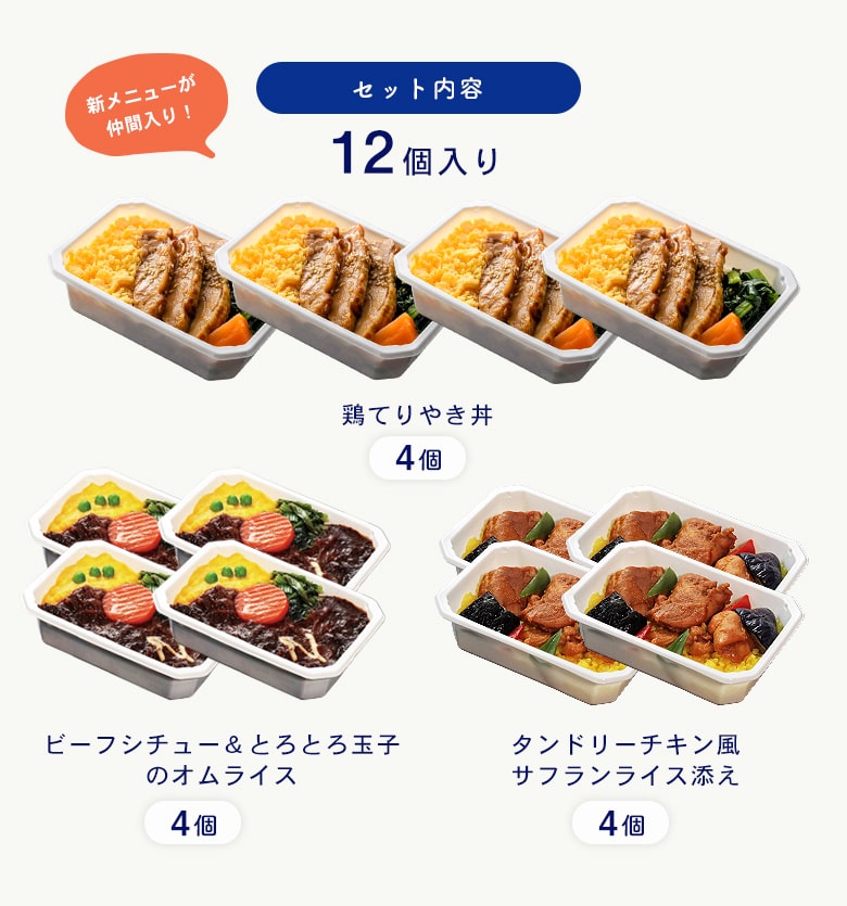 『機内の味を、ご家庭でもお楽しみください』 【ANA's Sky Kitchen 】おうちで旅気分!! ANA国際線エコノミークラス機内食 メインディッシュ ブルーリストランテ 第31便 12個入り ■内容量:12個(3種各4個ずつ) ・ビーフシチュー&とろとろ玉子のオムライス 4個 ・タンドリーチキン風サフランライス添え 4個 ・鶏てりやき丼 4個 ANAの機内食の味をそのままにお届けする【ANA's Sky Kitchen】は、お子様からご高齢者など幅広い方にご利用いただける商品です。 レンジで温めるだけの簡単調理で贅沢グルメと共に旅気分が味わえます。 冷凍で保存可能ですので、一人暮らしの方や単身赴任の方、リモートワークの方などにもおすすめです。