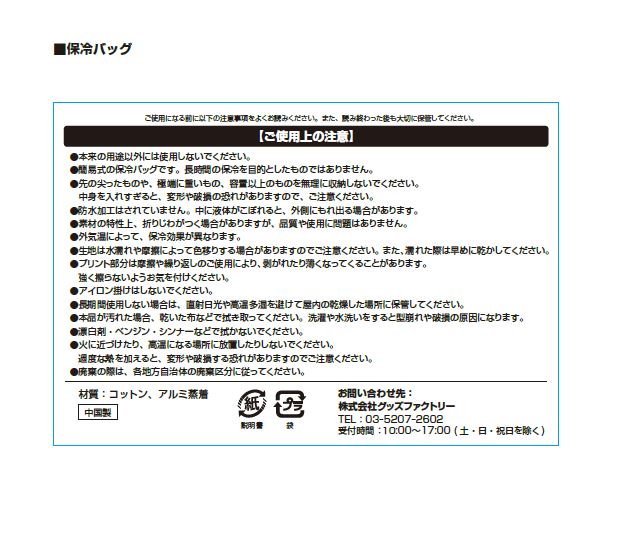 ・簡易式の保冷バッグです。長時間の保冷を目的としたものではありません。