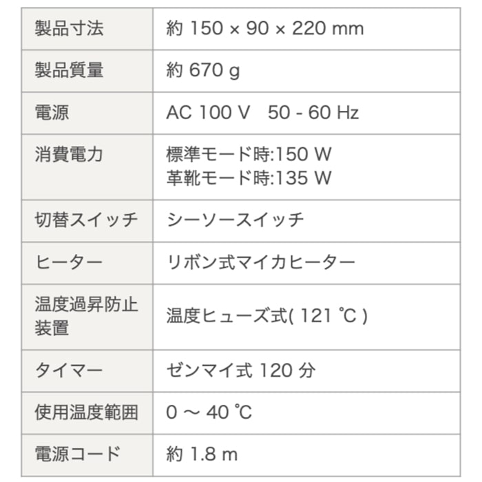 スペック【製品寸法】 約 150 × 90 × 220 mm