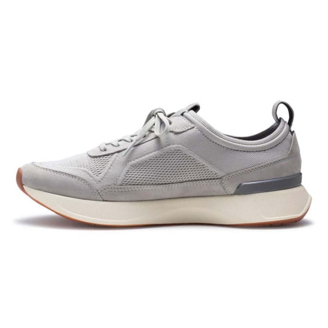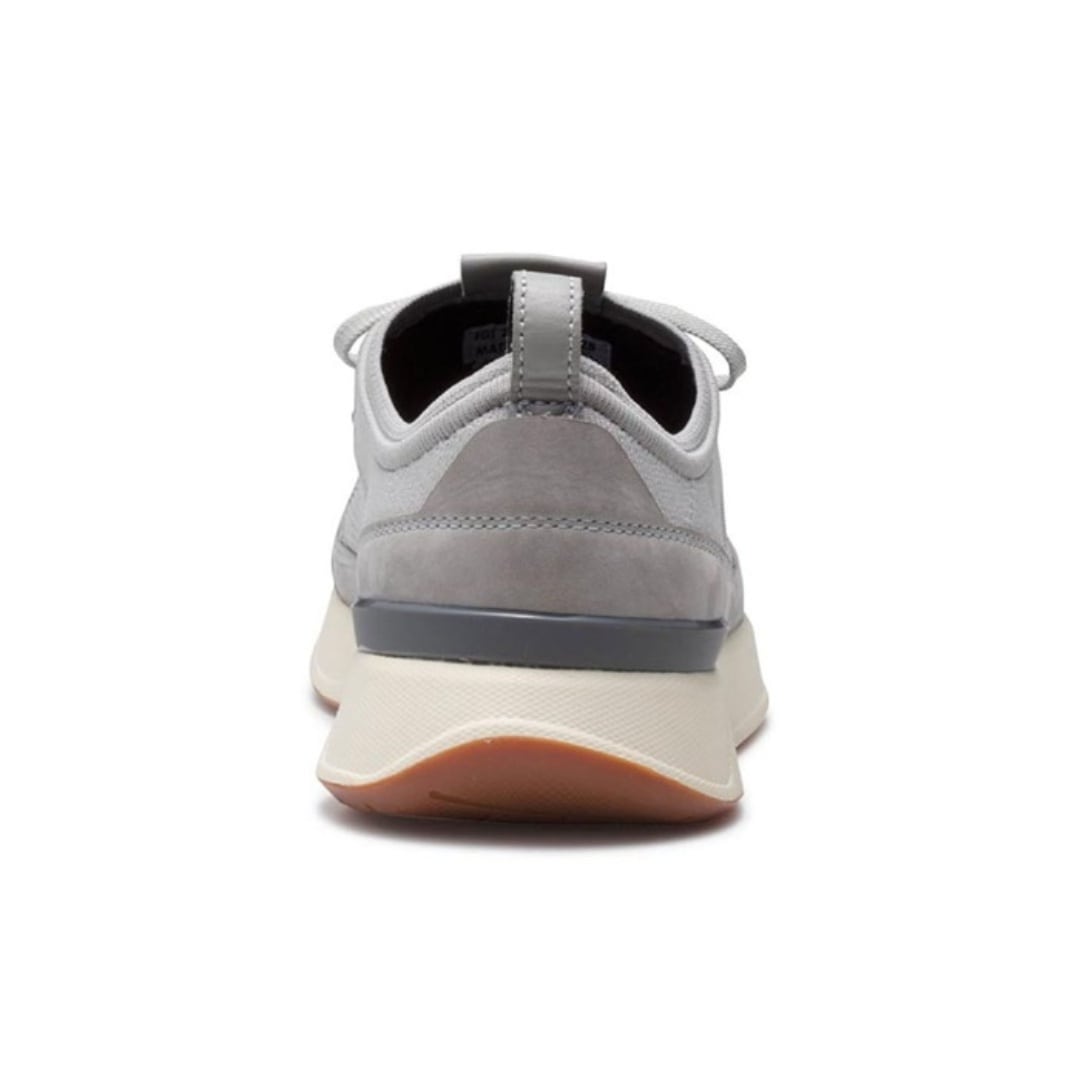 インソールに施されたシリコンゴムの滑り止め加工が、歩行時の足裏の動きを捉えて靴の中でのズレを抑制。伸縮性のあるニットアッパーに包まれた足元に安定感を与え、快適でスムーズな歩行をサポートします。滑らかな質感のヌバックをレイヤーとして配し、着脱を助けるプルストラップにはスムースレザーを採用。異素材を組み合わせながらも、トーンを統一することで洗練された印象に仕上げています。レザーシューズを長年手がけてきたREGALならではの素材使いが、品のあるアクセントとして息づいています。