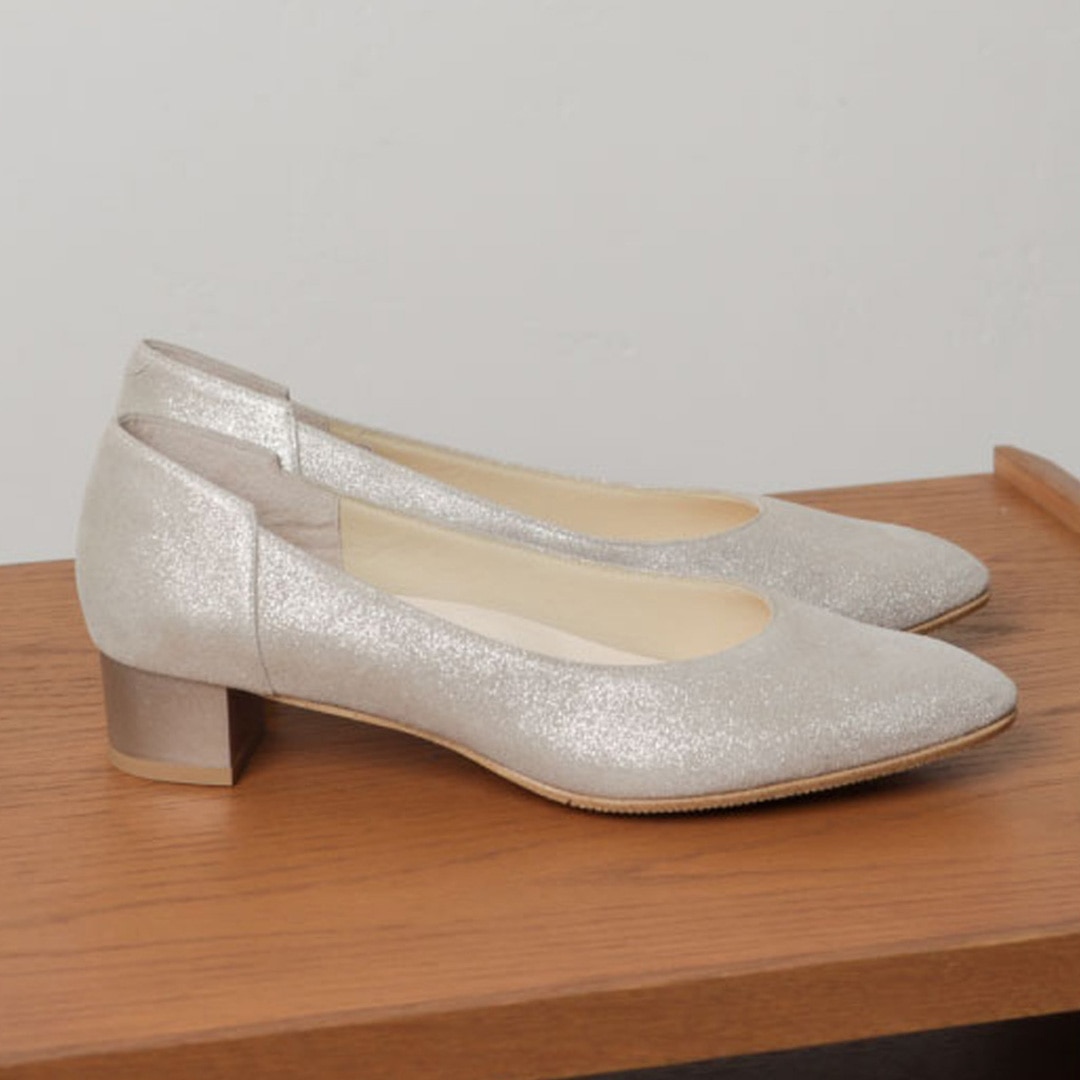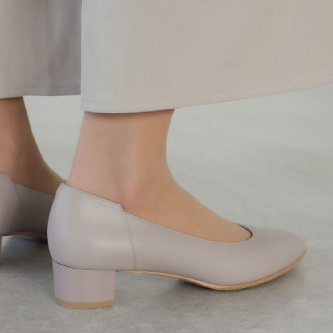 踵部分の切り替えが特徴のオールウェザーパンプス。