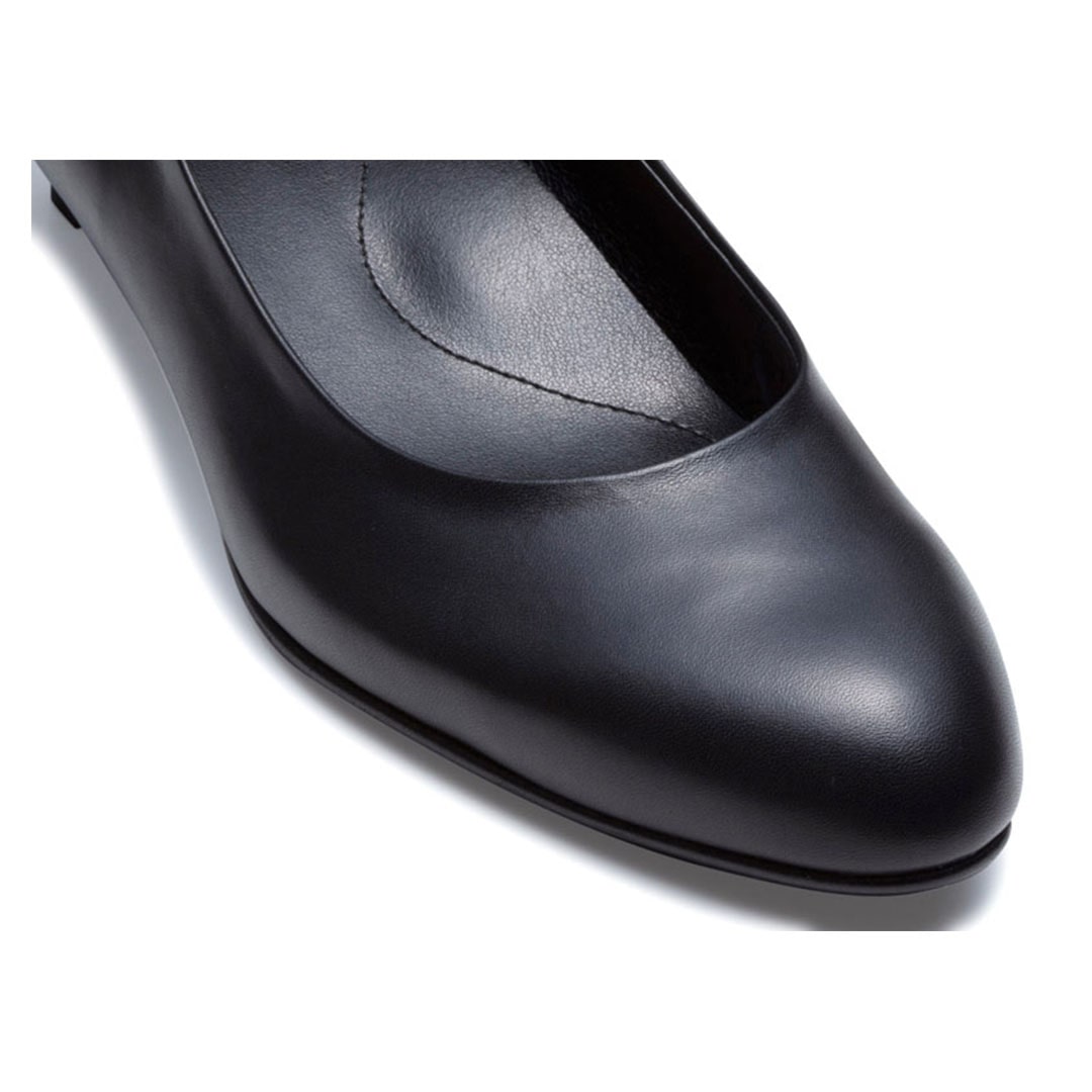 ローヒールプレーンパンプス。疲れにくく、スタイルを選ばずカジュアルにもマッチするアイテム。