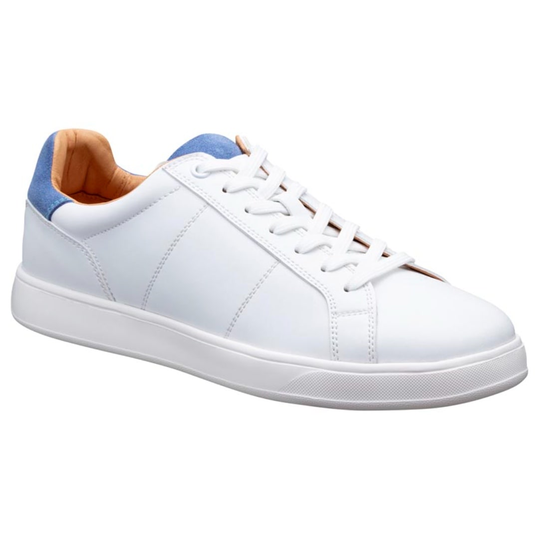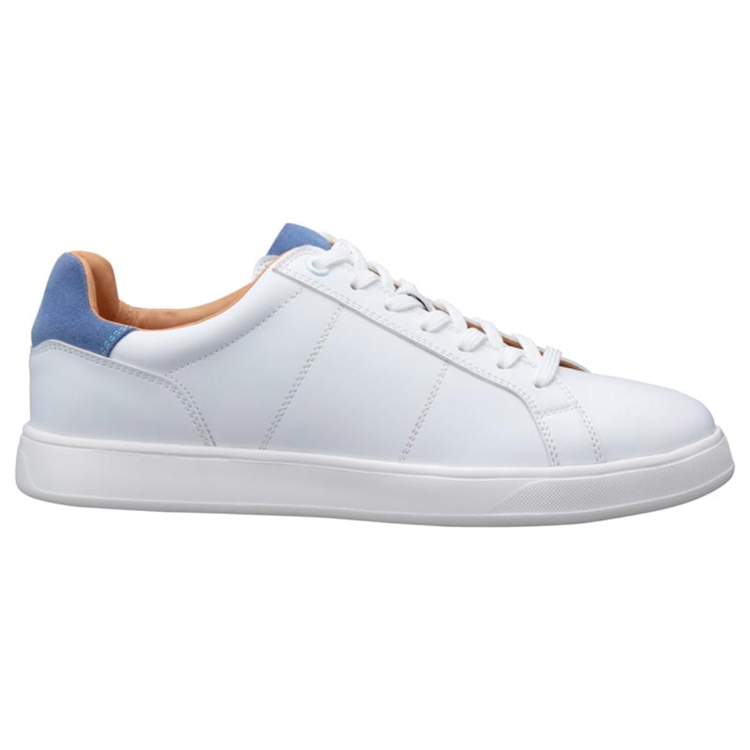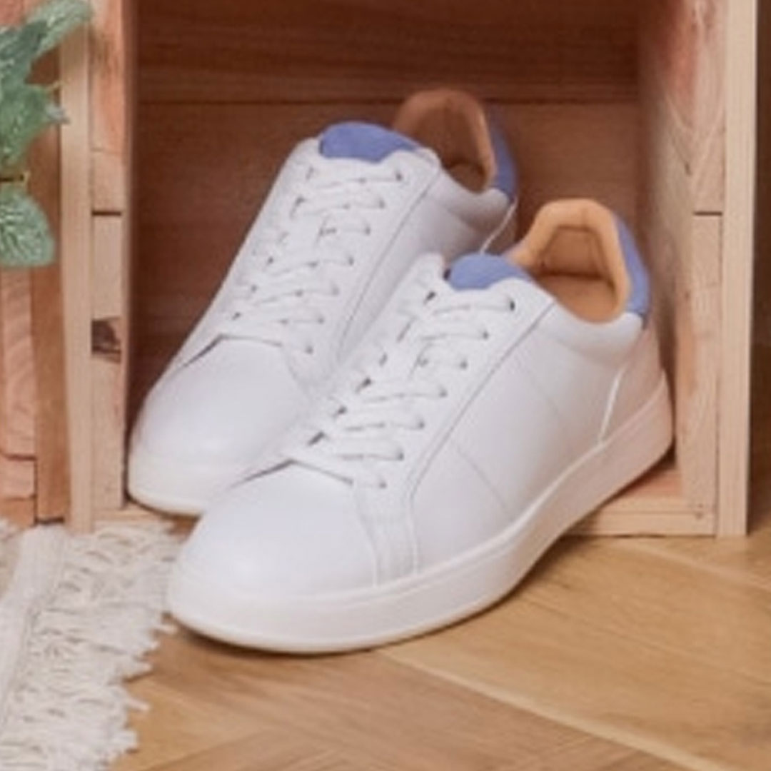 シンプルなホワイトベースながらも、ベロア素材の差し色が足元を引き立たせる一足です。