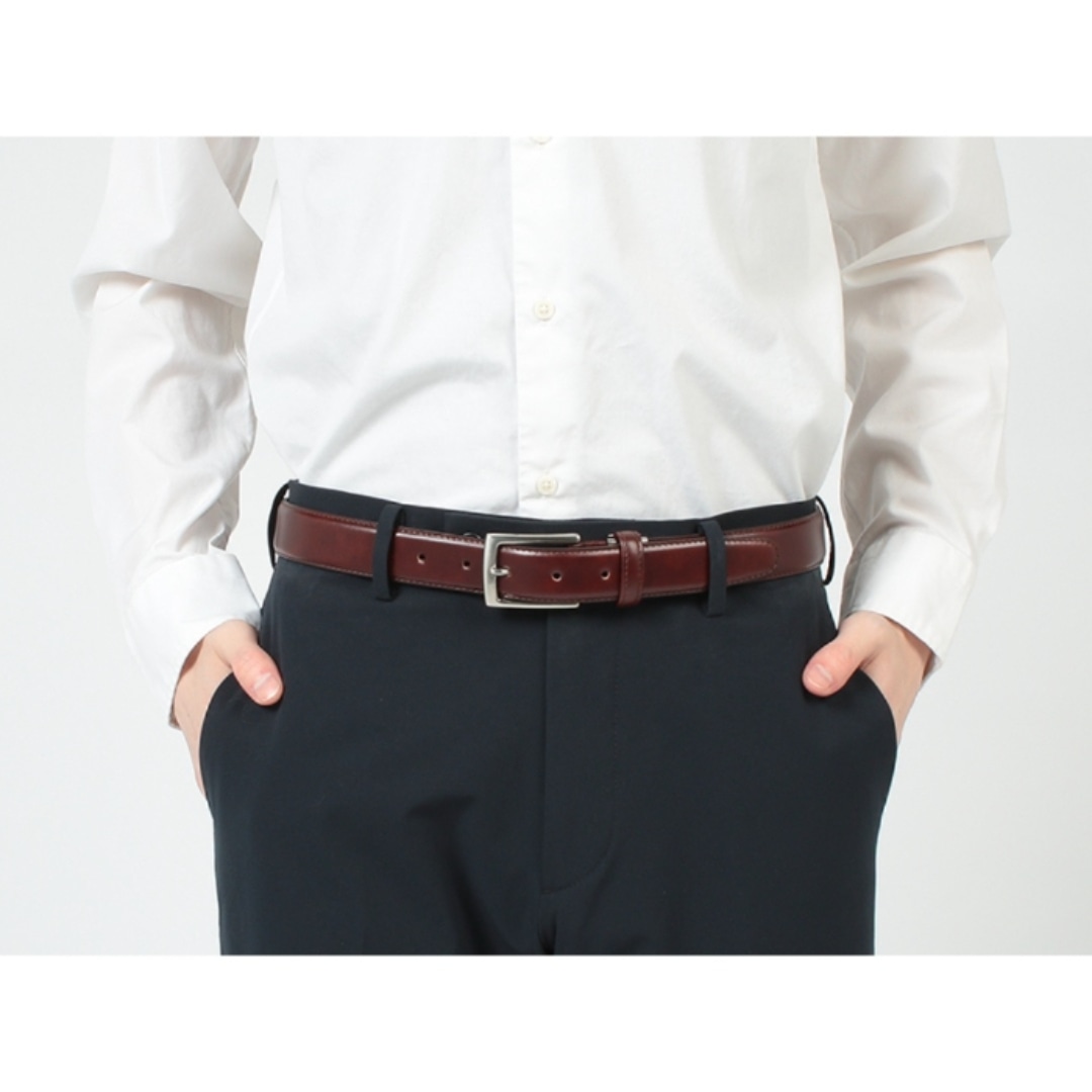 薄くボカシ加工を施したドレッシーな佇まいは、高級感ある真鍮鋳物のバックルと相まってシンプルながら存在感を放ちます。