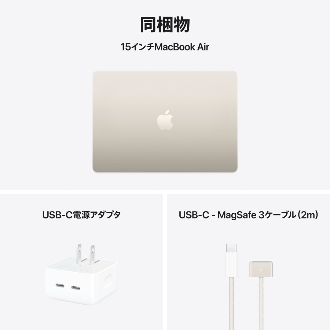 15インチMacBook Air: 10コアCPUと10コアGPUを搭載したApple M4チップ, 24GB, 512GB SSD - スターライト
