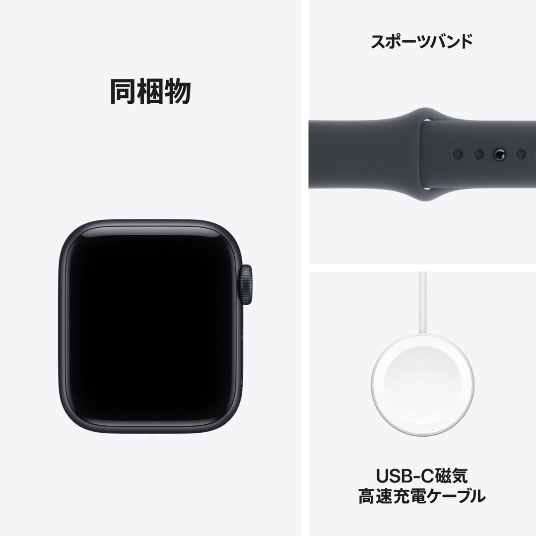 | 同梱物 | Apple Watch SE 3、バンド、Apple Watch磁気高速充電 - USB-Cケーブル(1m) |