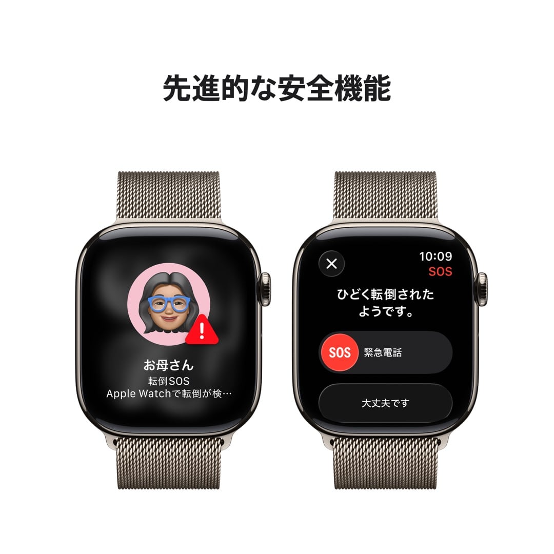 Apple Watch Series 11(GPS + Cellularモデル)- 46mmナチュラルチタニウムケースとナチュラルミラネーゼループ - S/M with AppleCare+