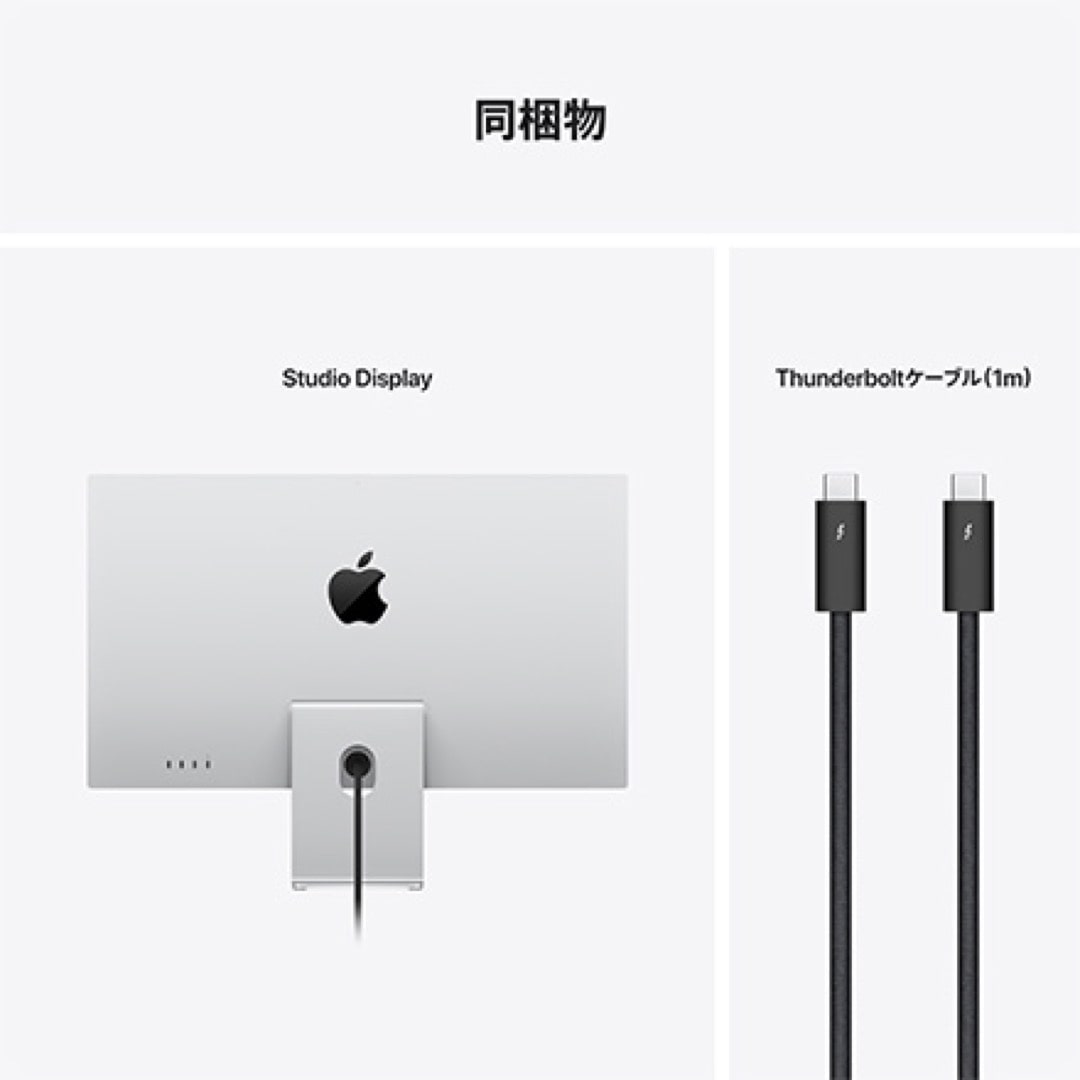 | 同梱物 | Studio Display(Nano-textureガラス、傾きを調整できるスタンド搭載)、Thunderboltケーブル(1 m)、Nano-textureガラス用ポリッシングクロス |