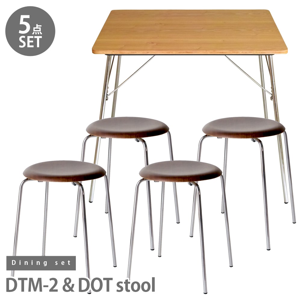 シェルチェアで知られるイームズがデザインした折りたたみテーブル「DTM-2」とデンマークを代表する北欧デザインの巨匠、アルネ・ヤコブセンによる「ドットスツール」をお得なダイニングセットにしました。