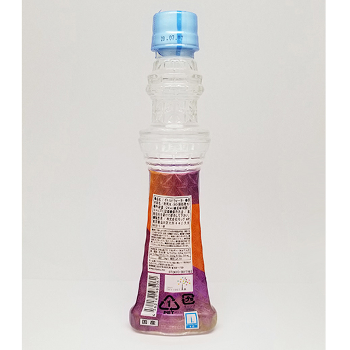 「東京スカイツリー ボトルウォーター 和柄 紫」は、細部までこだわったデザインが美しい、東京スカイツリー型のボトルウォーターです。東京のシンボルタワー、東京スカイツリーをモチーフにしたペットボトル入りの飲料水です。ボトルの底は三角すい状になっており、実際のスカイツリーを再現しています。ラベルにはスカイツリーが描かれており、飲んだ後も飾りたくなる美しいデザインです。ちょっとしたプレゼントや東京土産などにもご利用ください。※ラベルの特性上、蒸気収縮により、「シワ・インク割れ、透明部分の白濁、色むら」が起きる場合がございます。