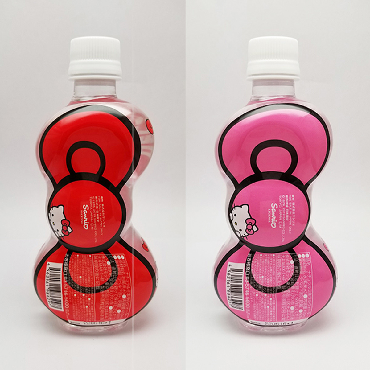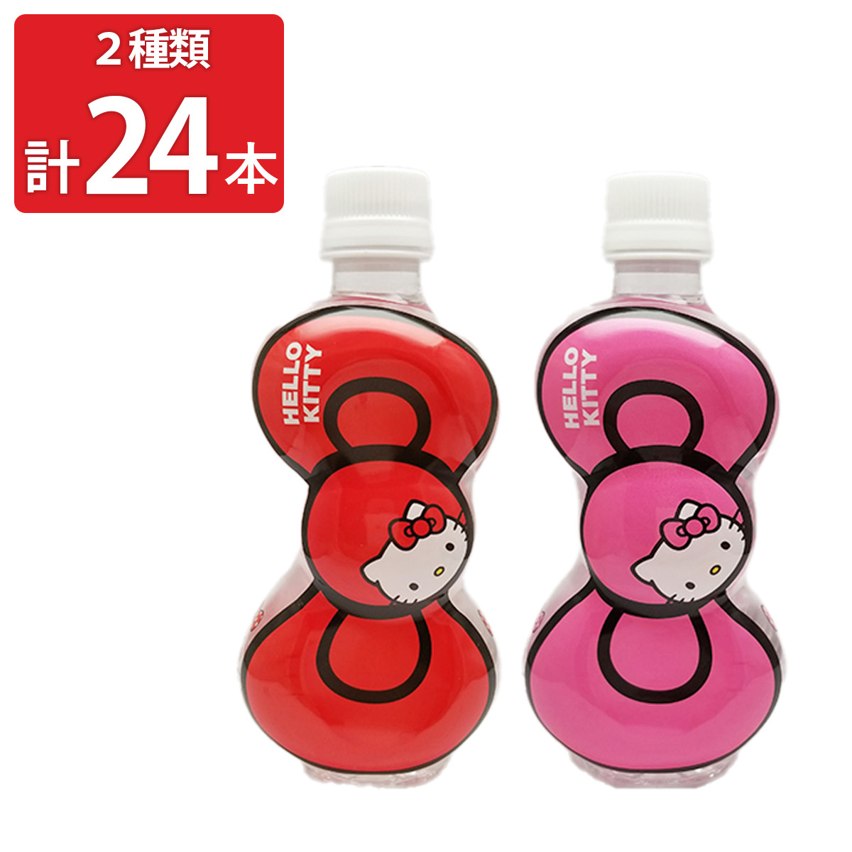 「キャラクター ボトルウォーター リボンキティ」は、ハローキティのリボン型ボトルウォーターです。キティちゃんのトレードマークであるリボンをモチーフにしたペットボトルです。中身は軟水で飲みやすい、ミネラルウォーターが入っています。鮮やかな赤とピンクが印象的なデザインで、ボトルのサイドにも、小さなリボンとキティちゃんがプリントされています。持っているだけで気分があがるデザインです。キティちゃんが好きな方、キティちゃんグッズを集めている方へのちょっとしたプレゼントやお土産などとしてもご利用ください。※ラベルの特性上、蒸気収縮により、「シワ・インク割れ、透明部分の白濁、色むら」が起きる場合がございます。