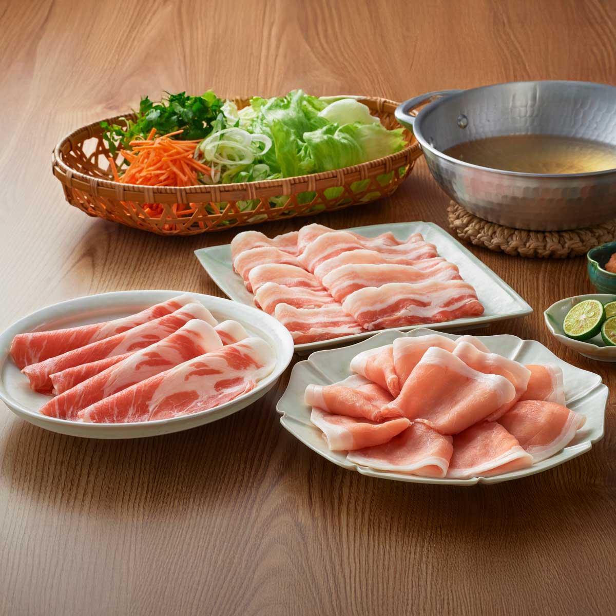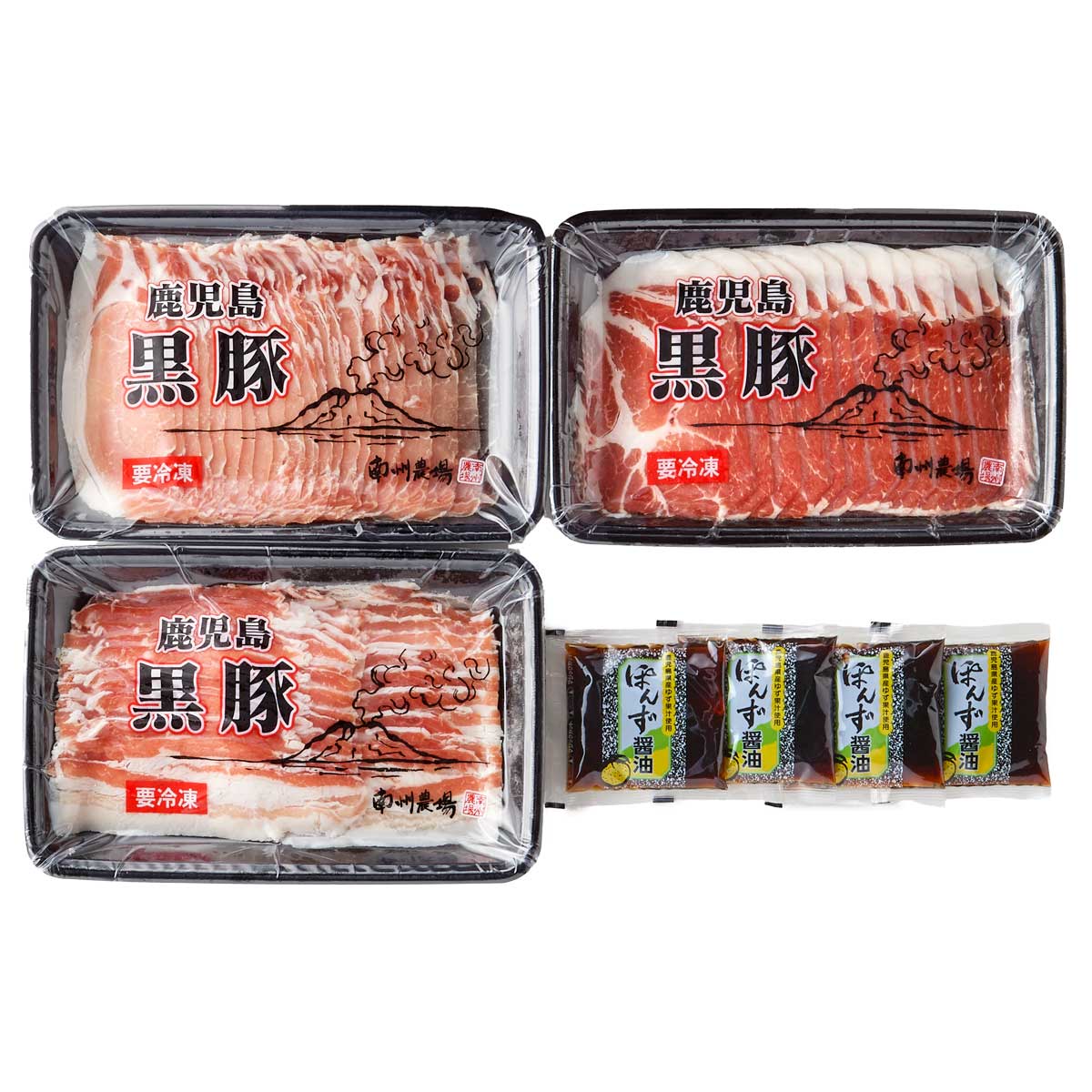 自然豊かな鹿児島県大隅(おおすみ)半島にある南州農場で大切に育てられた「かごしま黒豚」を原料に使用した「南州農場 かごしま黒豚 しゃぶしゃぶ肉 食べ比べセット」です。豚ロース肉、豚肩ロース肉、豚バラ肉のスライスを詰め合わせました。それぞれのしゃぶしゃぶ肉の違ったおいしさを、食べ比べてお楽しみください。付属のポン酢タレもぜひお使いください。かごしま黒豚は、鹿児島県黒豚生産者協議会が認定するブランド豚です。バークシャー種100%の純粋黒豚のみが対象で、飼育方法や飼料に厳しい基準(サツマイモを一定期間以上与えることが求められるなど)があります。肉質はきめが細かく、甘みのある脂肪が特徴です。<ロース>赤身が多く、さっぱりした味わい。<肩ロース>赤身と白身のバランスが良い。しっかりとした旨みが特徴。<バラ>黒豚ならではの甘みの強い白身と、濃い赤身の味わいを楽しめます。{調理方法}大きめの鍋にお湯を入れて加熱し、沸騰したら食べる分ずつ肉を鍋に入れ、肉に火が通ったらお好みのタレでお召し上がりください。お好みで白菜、椎茸、水菜等を入れても美味しく召し上がれます。