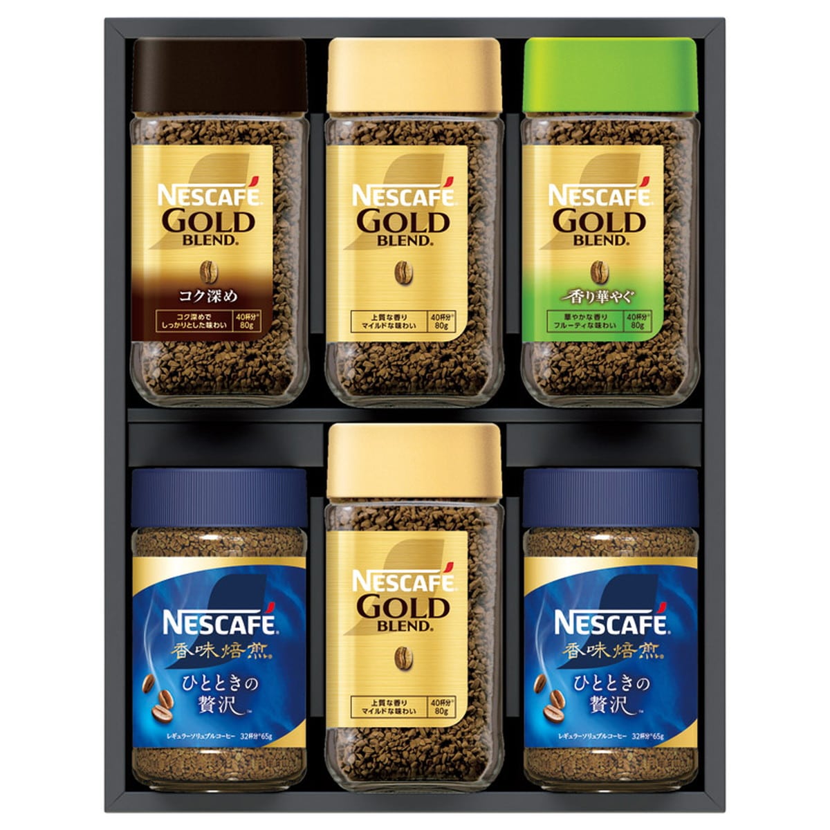 ●数量・内容:ゴールドブレンド(80g)・香味焙煎ひとときの贅沢(65g)×各2、ゴールドブレンドコク深め(80g)・ゴールドブレンド香り華やぐ(80g)×各1
