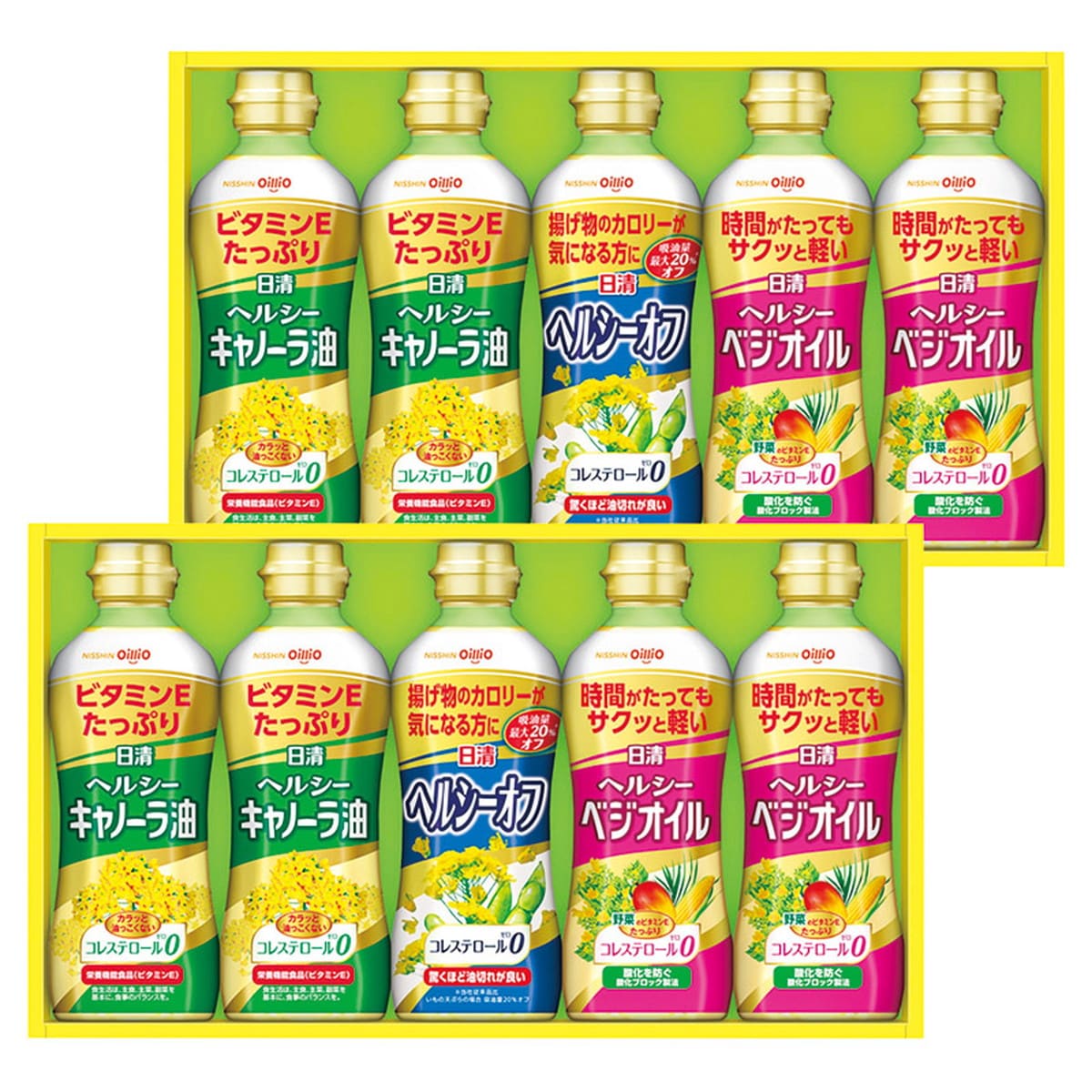 「日清オイリオ ヘルシーオイルセット」 キッチンの必需品。どんなお料理にも使えるおいしさと健康を考えたヘルシーオイルの詰合せです。