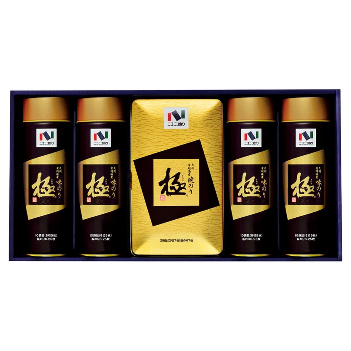 「ニコニコのり 九州有明海産海苔詰合せ 極」 九州有明海産の上質な海苔「極」の焼のりと味のりを詰合せました。こだわりの逸品ギフトです。