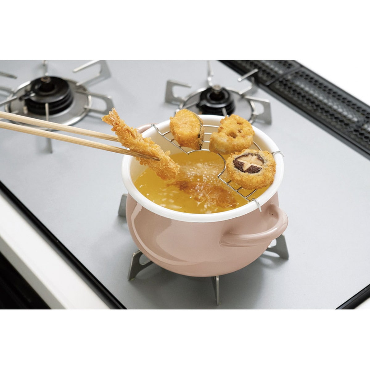 「ストクック IH対応ホーロークッキングポット18cm」 保存に最適ホーローお鍋。揚げ物から煮込み、炊飯まで幅広く活躍します。揚げアミやシール蓋付で便利です。
