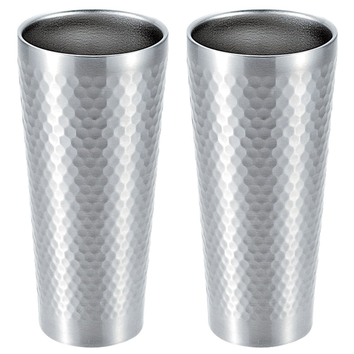 「颯-SOH- ステンレス断熱タンブラー420ml 2P」 美味しさ持続の断熱二重構造!スマートなシルエットに存在感が際立つ槌目模様。