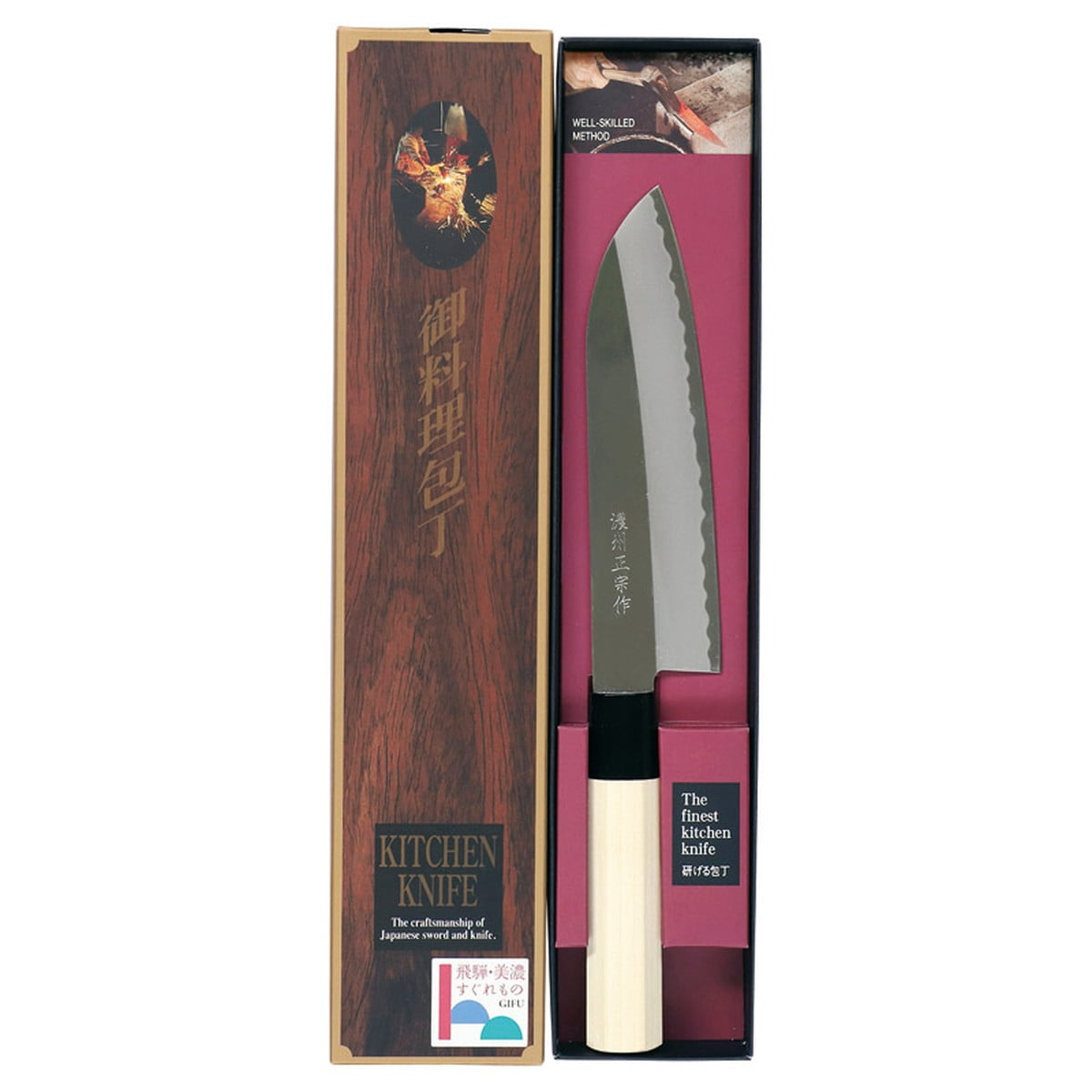 「飛騨・美濃すぐれもの 鋼三徳和包丁」 百貨店、専門店のバイヤーやメディア関係者による審査を経て選ばれる「飛騨・美濃すぐれもの」に認定された、岐阜県を代表する県産品の包丁です。
