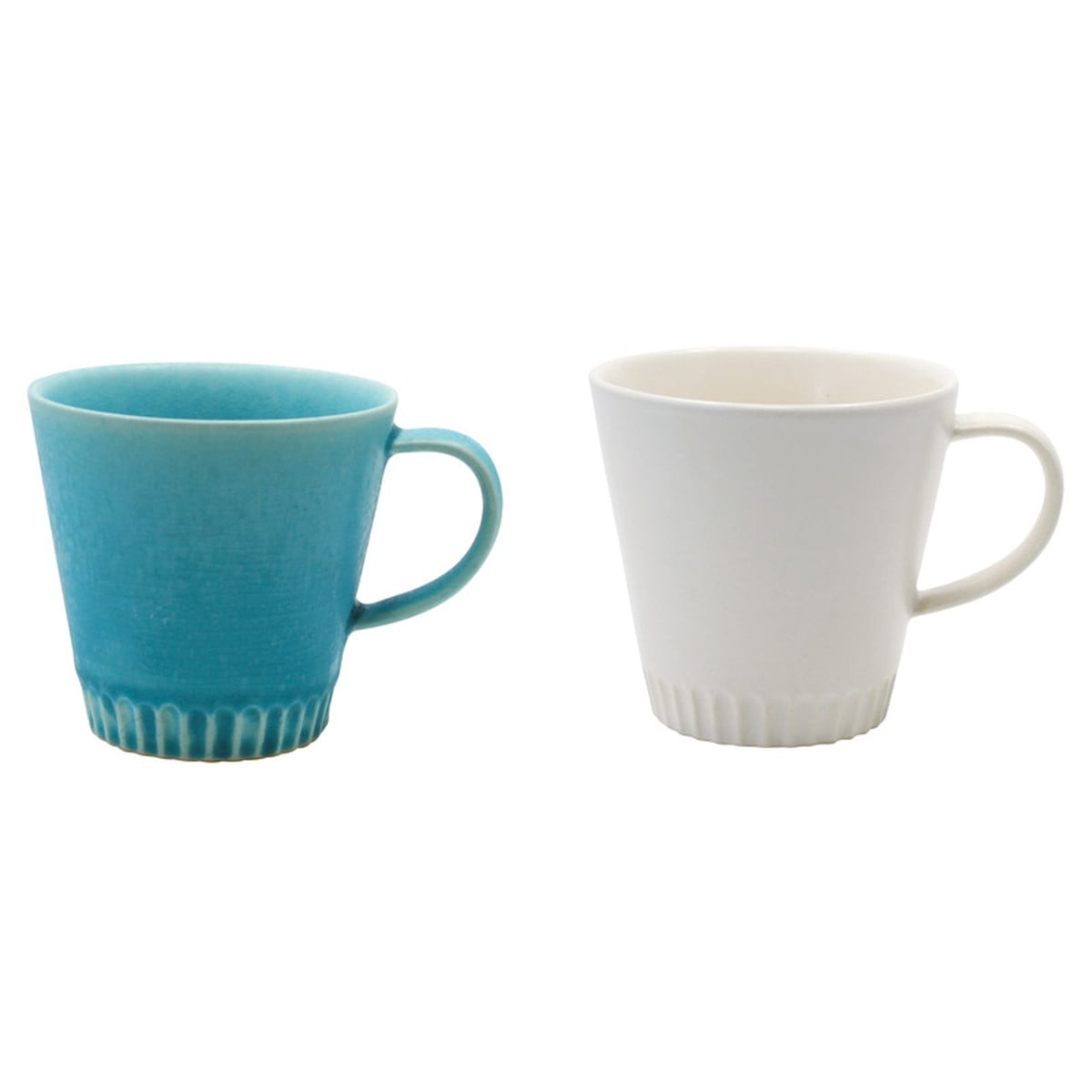 「作山窯 ストライプ マグペア」 美味しさを、美しさから。岐阜県土岐市、駄知。この山間のちいさな町にSAKUZANは工房を構えます。美濃焼の伝統を育んだ風土に根ざしながらも、現代の感覚を軽やかにとり入れ違いを生みだします。伝統と現代の感覚を大切に作山窯の職人たちが丁寧に作る形の美しさ、優しい手触りを大切にもの作りをしています。シンプルな凹凸が器に陰影を作り出してお料理にストーリーが生まれます。