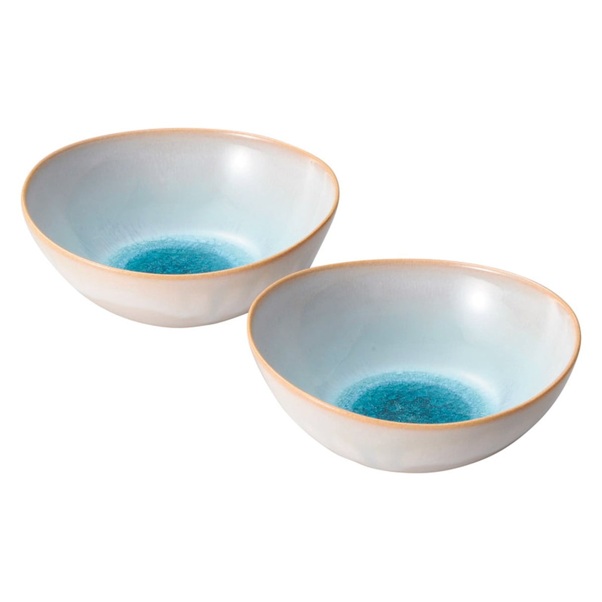 「萩焼 ソライロ ペア鉢」 流れ込んだガラスの釉薬がきれいな一品です。