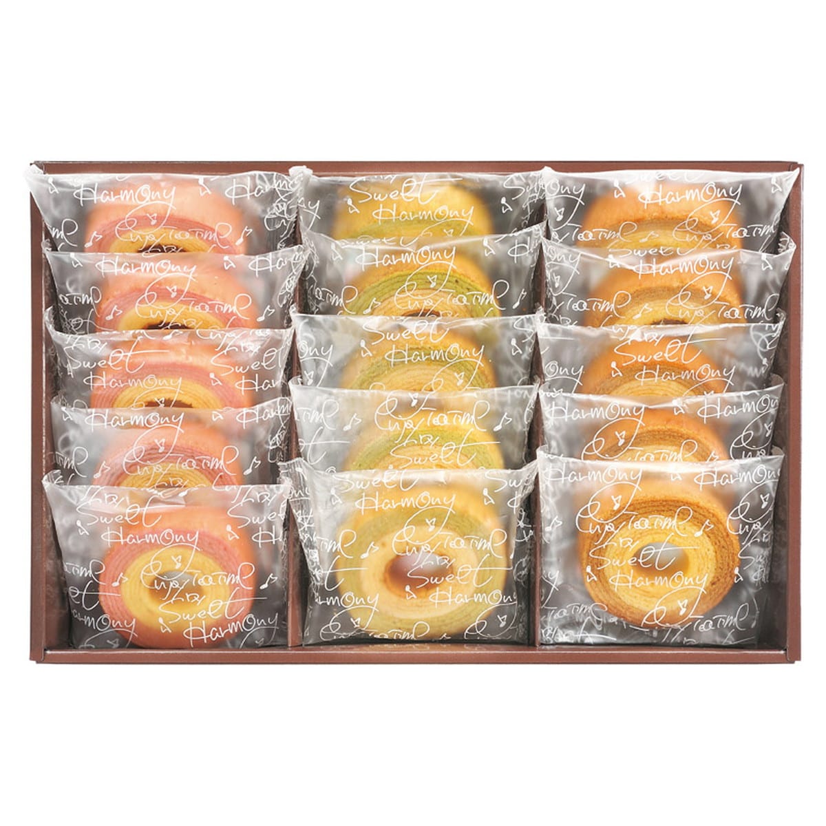 「セレブコレクション カラフルバームクーヘン KRA-25A」 3種類のバームクーヘンがたくさん入ったカラフルで贅沢なセット。