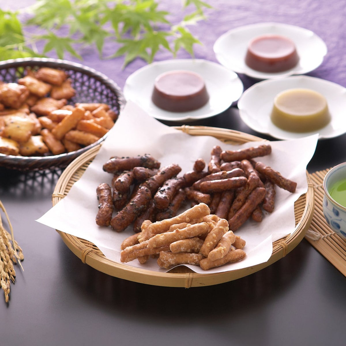 ●数量・内容:蜂蜜黒糖かりんとう(40g)・あられ(海老・海苔・味噌)(12g)・羊かん(抹茶・練り・小倉)(60g)×各2、黒胡麻かりんとう(40g)・落花生かりんとう(40g)×各1