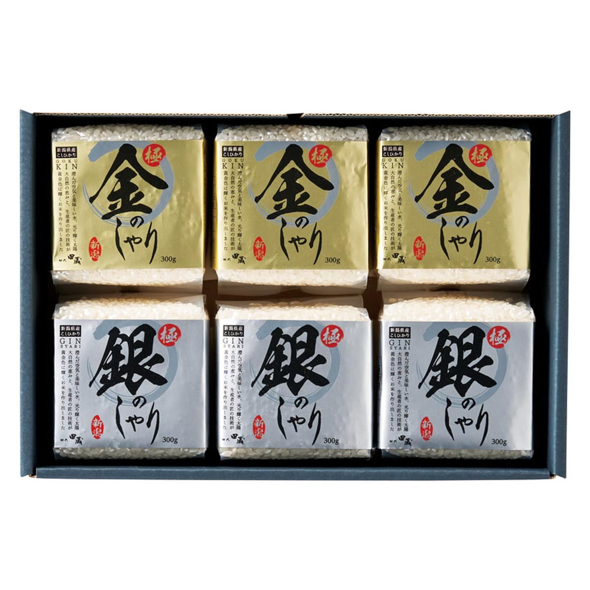 「初代田蔵 極金のしゃり・極銀のしゃりセット KKGG-4000」 日本の米どころとして知られる新潟県。新潟米を代表するこしひかりはツヤや粘り、独特の甘味が特徴的です。また、炊き上がったときの香りとツヤがあります。新潟県は稲作に必要な水や適した土地、気候に恵れています。五つ星マイスターが厳選した「新潟県産こしひかり」をお届けします。