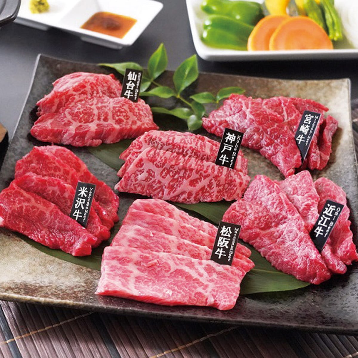 「6大ブランド和牛食べ比べ焼肉用 7001293」 日本を代表するブランド和牛の食べ比べセット。銘柄ごとに異なる濃厚な味わいをご堪能ください。