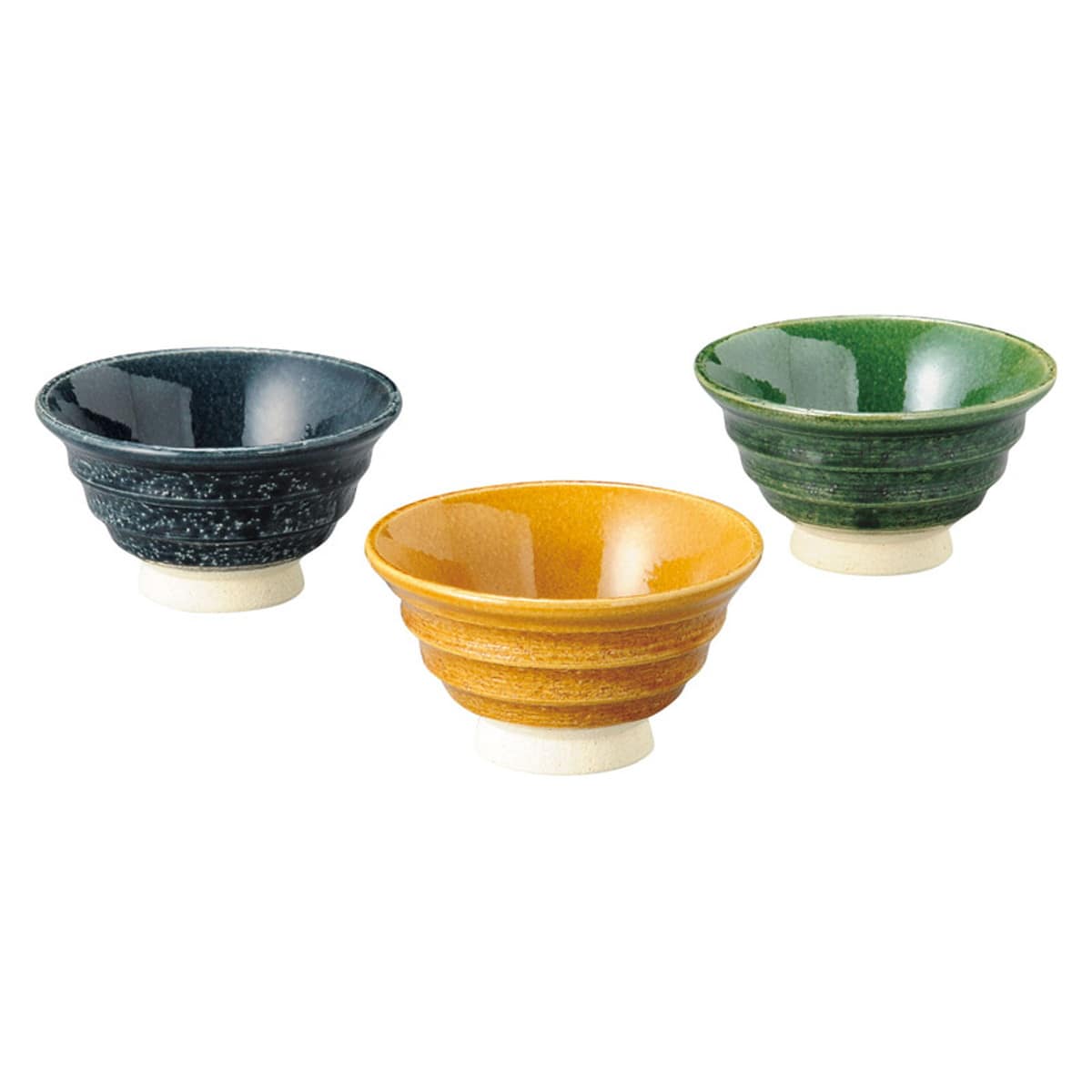 「瀬戸焼 釉変わり 飯碗3P」 3色の釉薬変りでくつろぎのひと時を演出します。