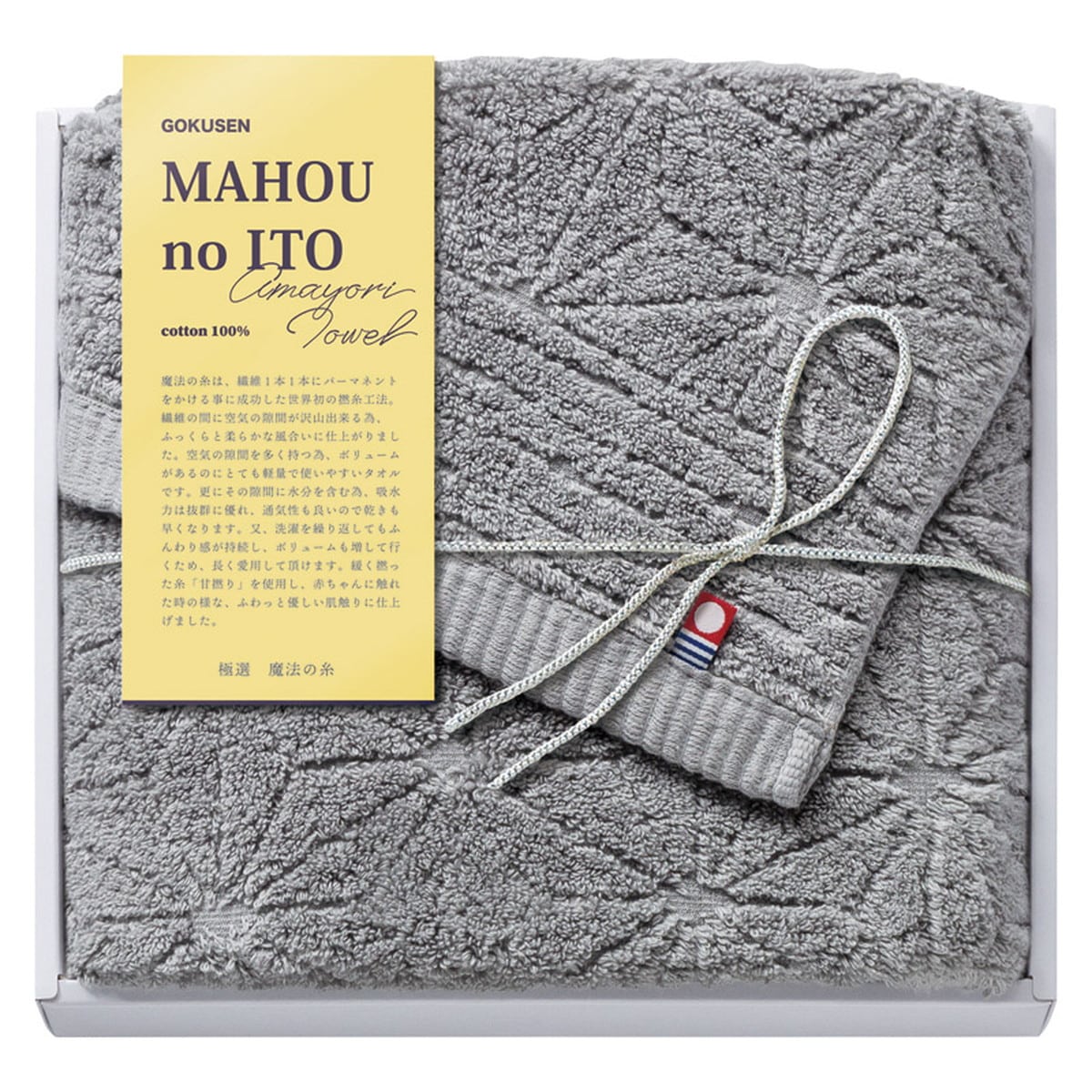 「今治極選 魔法の糸 フェイスタオル グレー GMA-201 GY」 さわって実感できるクオリティの高さ。世界初の特殊糸を使用し、洗濯するたびに柔らかな風合いが続きます。