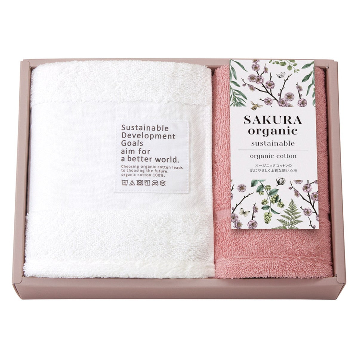 「国際認証取得オーガニック フェイス1P・ハンドタオル1P サクラ 67020」 国際認証取得オーガニックコットン100%の肌にやさしく上質な使い心地。ソフトな中厚手タイプで吸水力が良いタオルです。国際的な認証を多数取得している海外の工場で生産しており、工場で出たエネルギーは循環させて再利用にも取組んでいます。