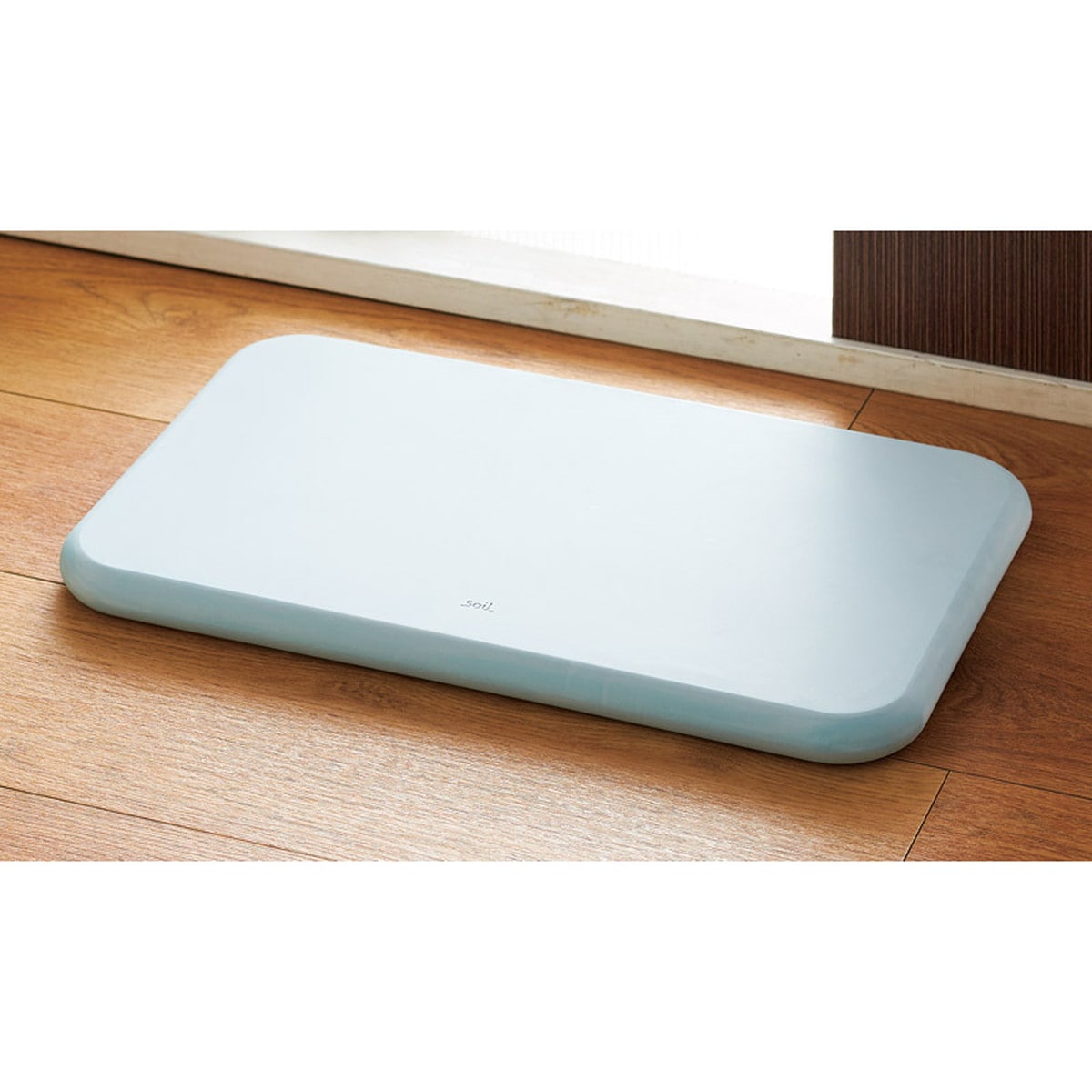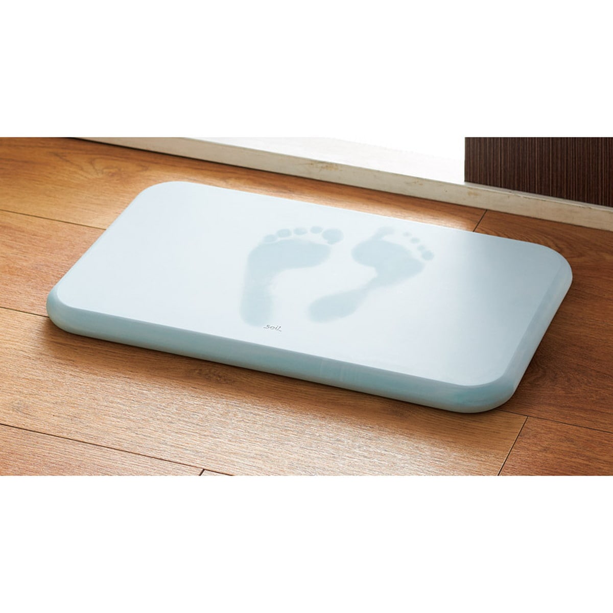 「soil バスマット ブルー」 吸水性の高い自然素材、珪藻土(けいそうど)でつくられたバスマットです。足の裏の水分をすばやく吸い取り、時間がたつと自然に乾燥します。