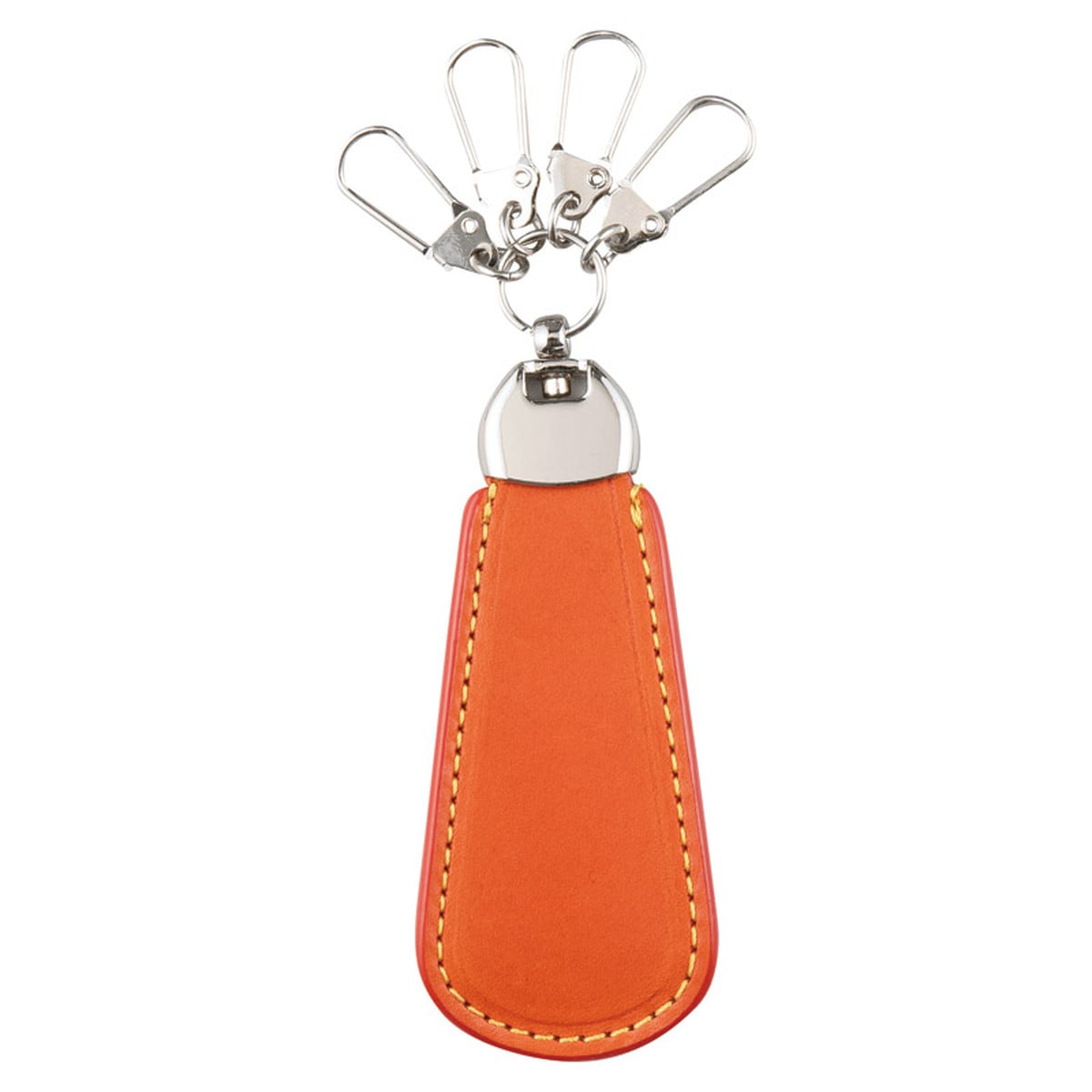 「プレリー ガジェット 靴ベラキーホルダー オレンジ NP44935」 イタリアの代表的なタンナーであるワルピエ社のブッテーロを使用。使い込むうちに深みを増す独特の味わいが魅力です。4つの鍵が付けられる、靴べらタイプのキーホルダー。