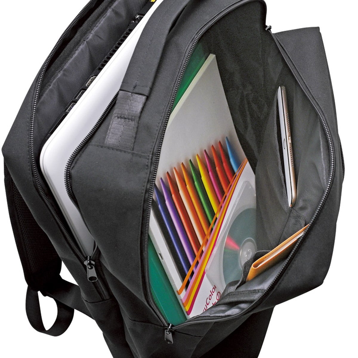 「ビジネスリュック(PC対応) H9051」 W本体でB4サイズ収納可、衝撃吸収材入りで15.6インチまでのノートPC等が収納できます。●ファスナー開閉式●外部:ファスナーポケット×1●内部:ファスナーポケット×1、オープンポケット×3