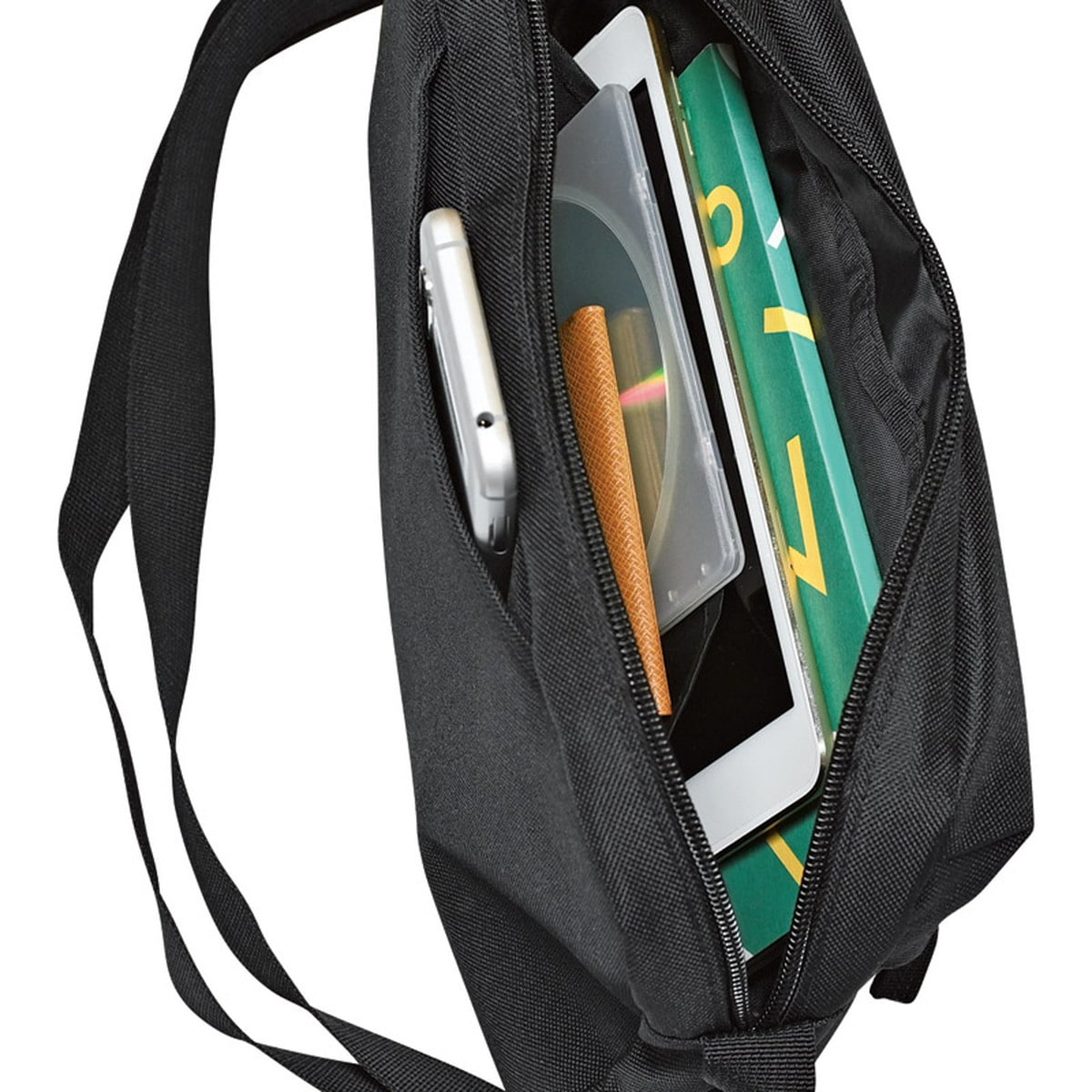 「ショルダーバッグ H5060」 財布や手荷物等の持ち運びに便利なショルダーバッグです。肩掛け、斜め掛け、ウエストポーチの3通りの持ち方ができます。●ファスナー開閉式●外部:ファスナーポケット×1、オープンポケット×1●内部:オープンポケット×1