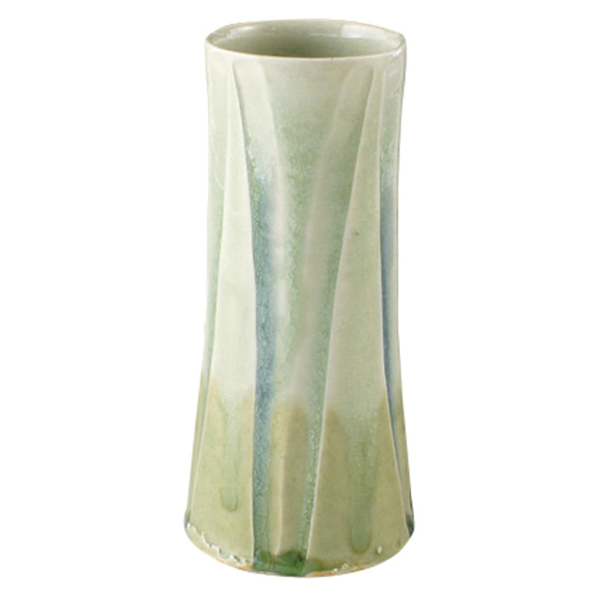 「京焼・清水焼 灰釉ソギ 花入 VDH102」 すっきりした形状と器に施された彫が美しい花生です。口広で使い勝手も良い花生です。